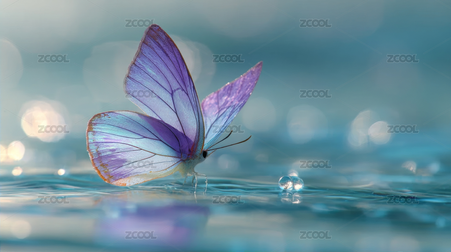 梦幻水中的紫色蝴蝶