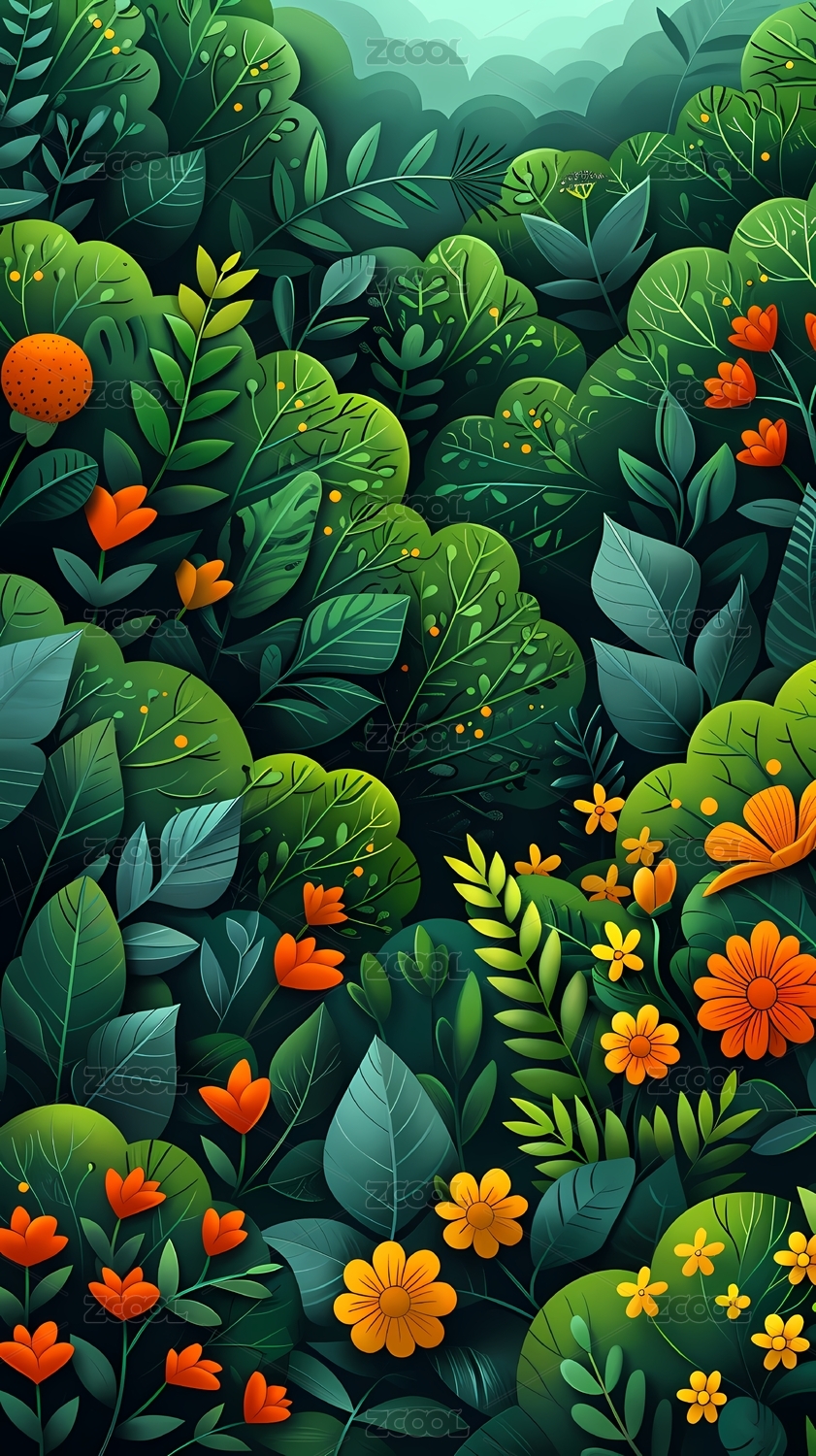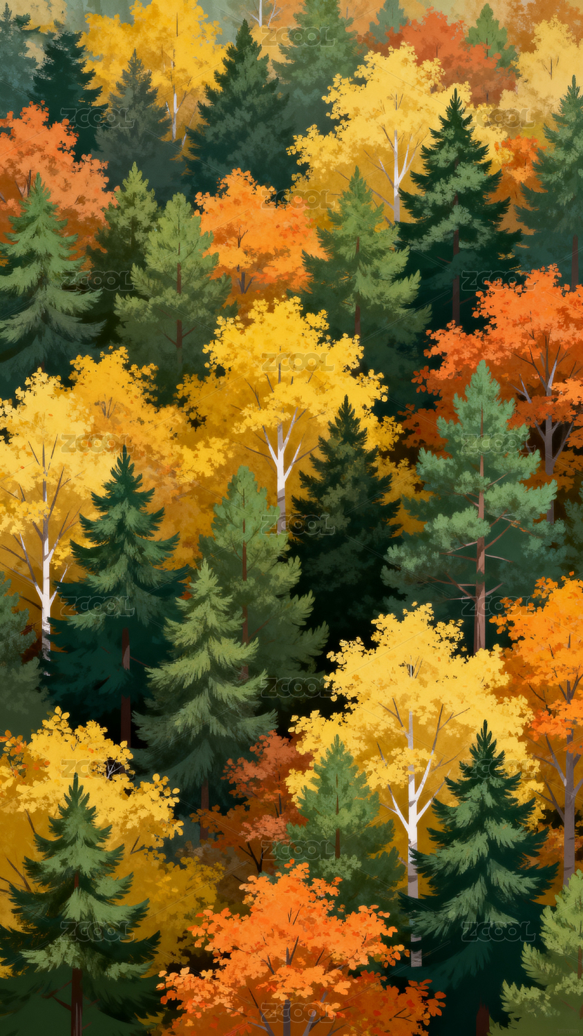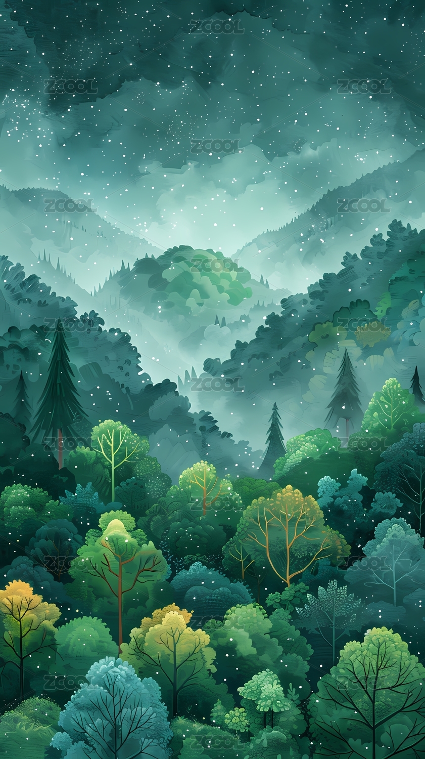 多彩森林插画