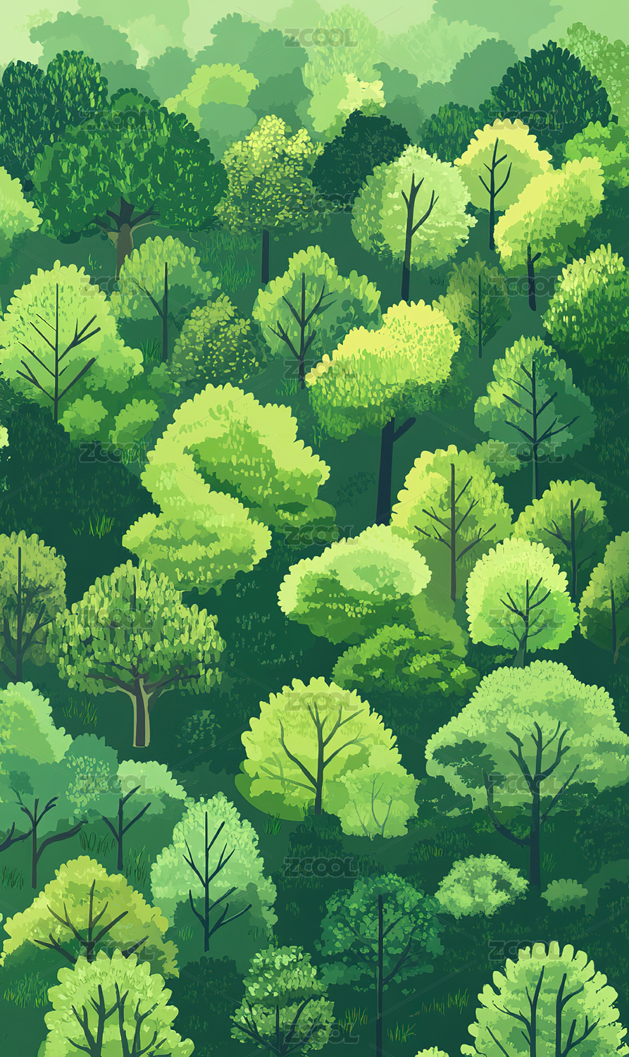 平面清新树林插画背景