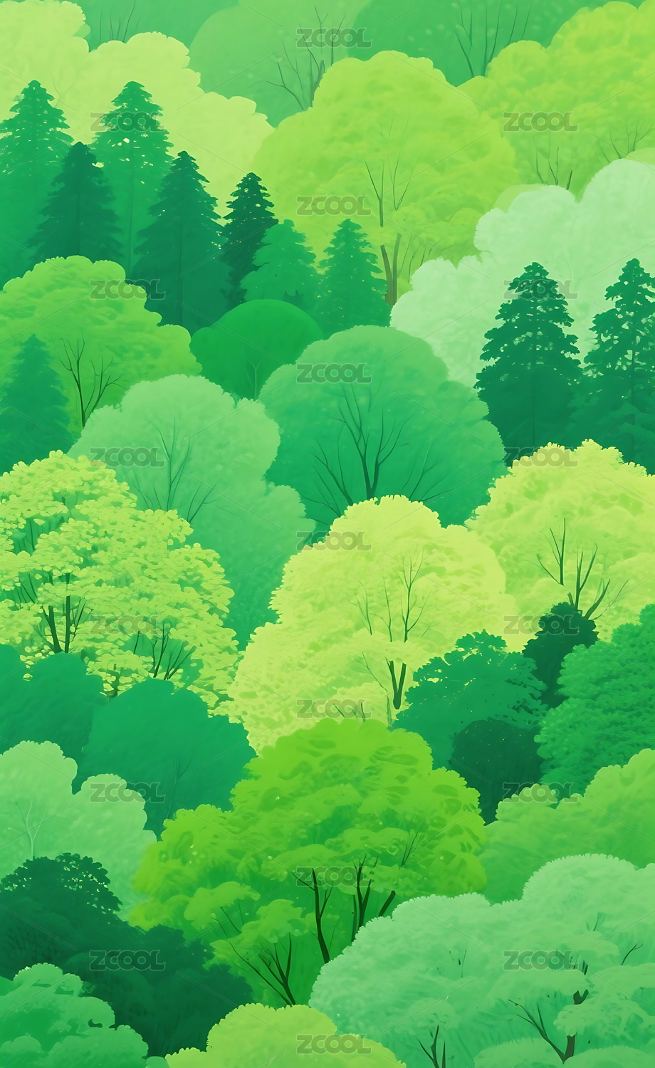 雨后绿色森林插图海报背景