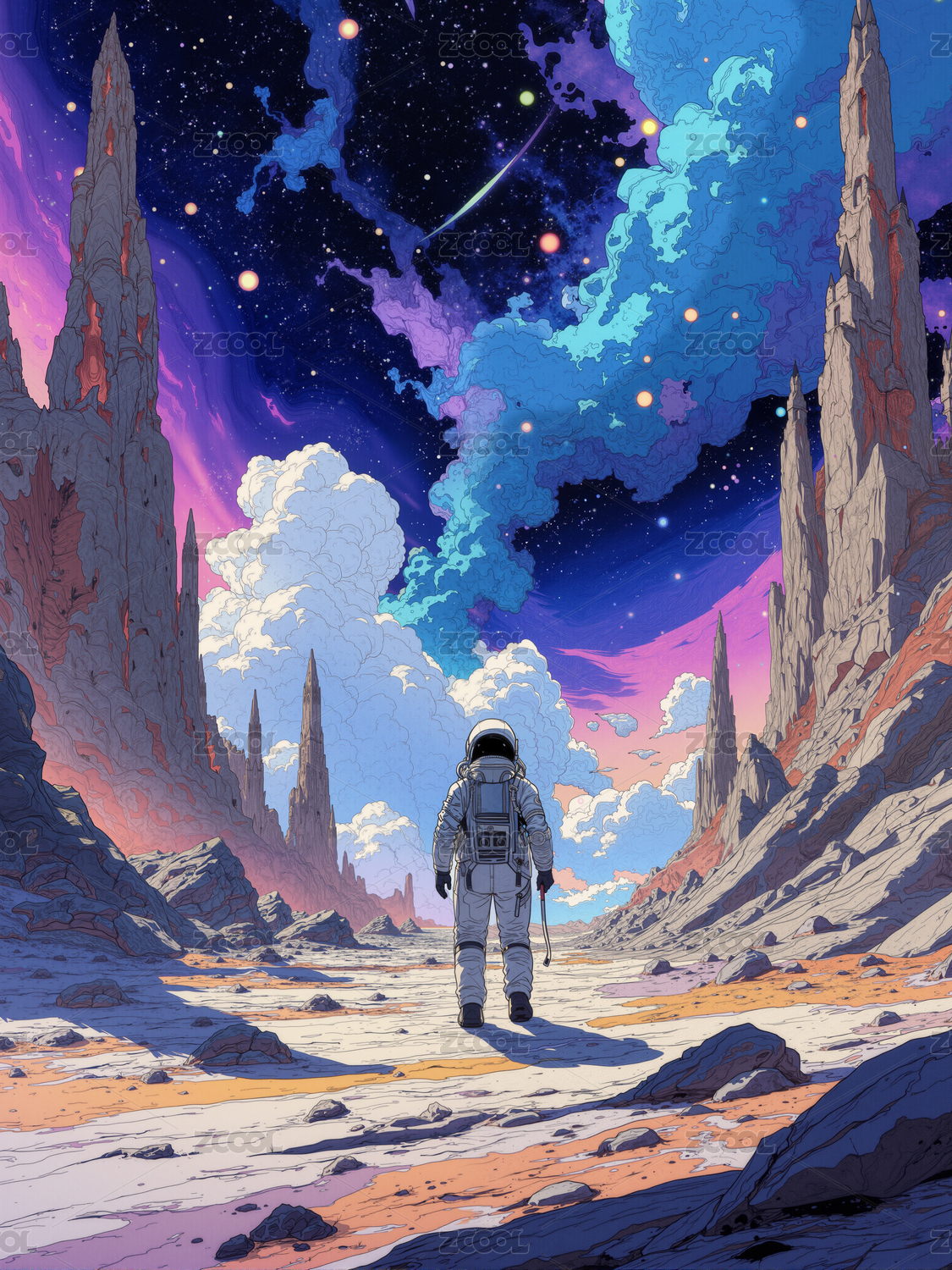 宇航员,步行,沙漠,红色,日落,场景,外星人,植物,户外,抽象