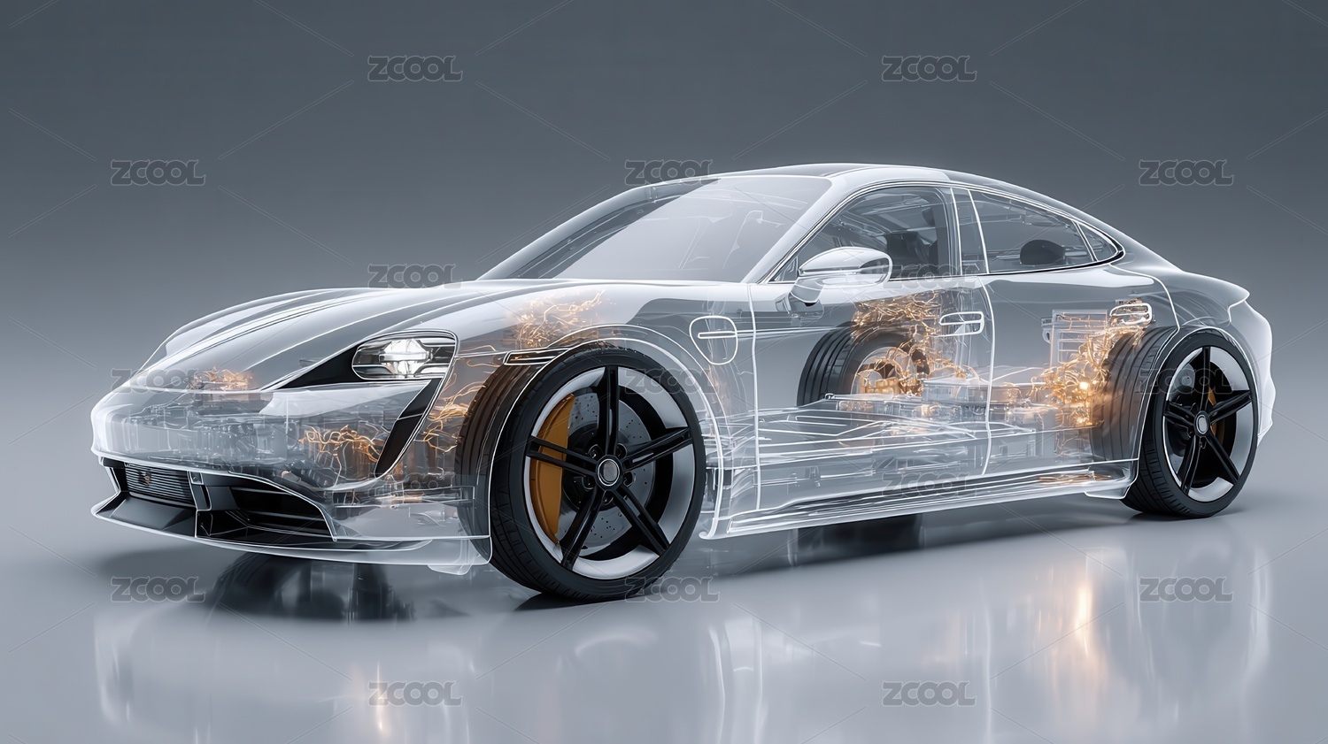三维黑色背抽象概念新能源智慧驾驶透明汽车