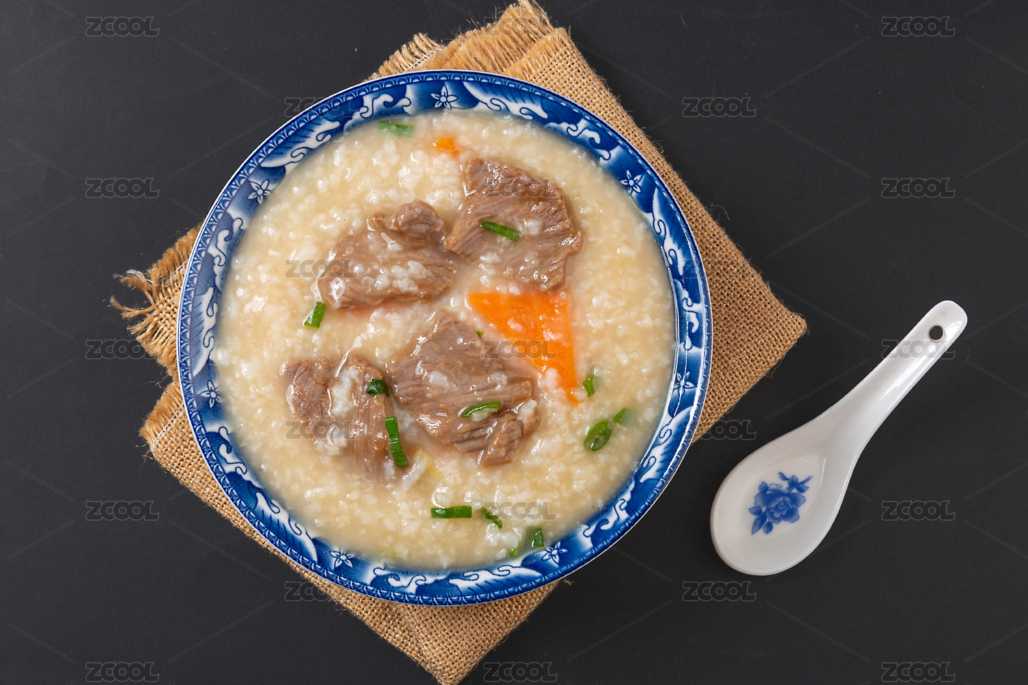 白色背景一碗牛肉粥