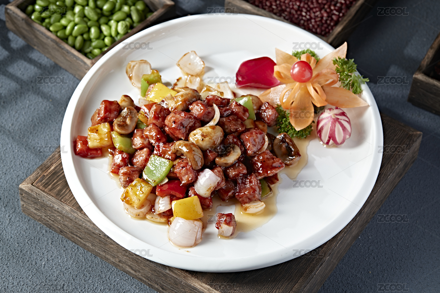 彩椒小洋葱口蘑酱爆牛仔粒