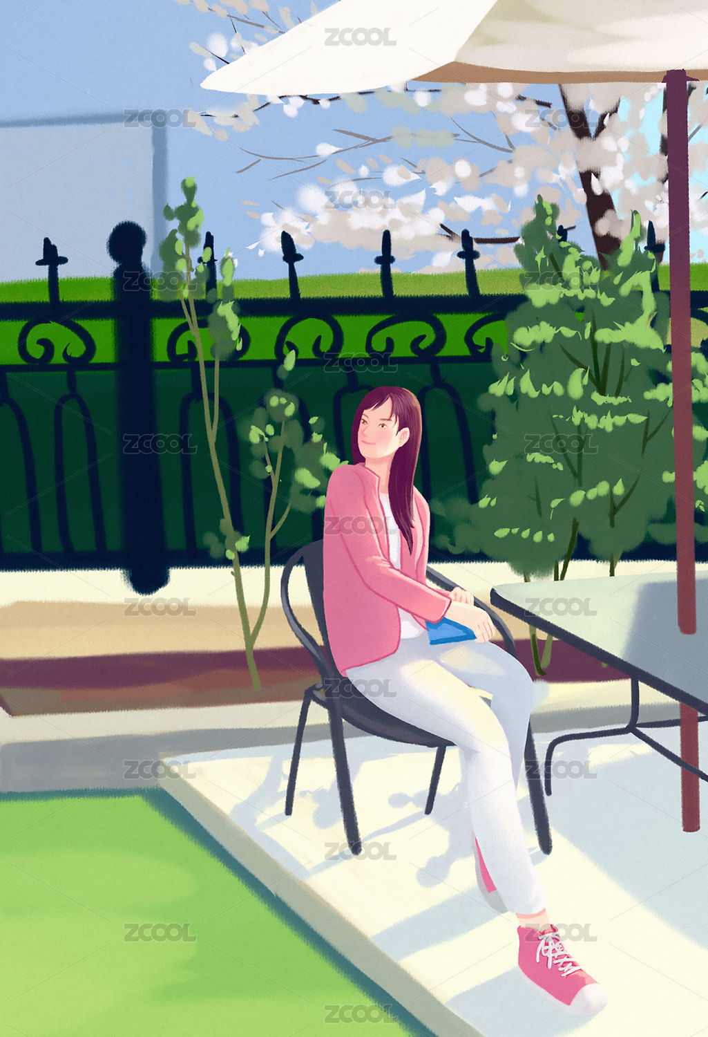 夏天在绿荫下乘凉听听音乐心情舒畅
