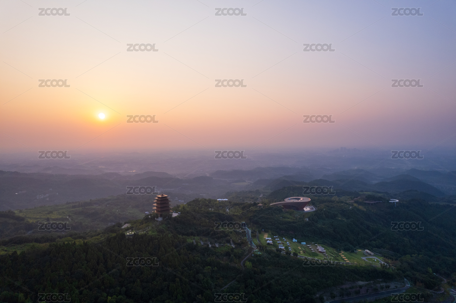 成都龙泉山城市森林公园丹景山丹景阁日出