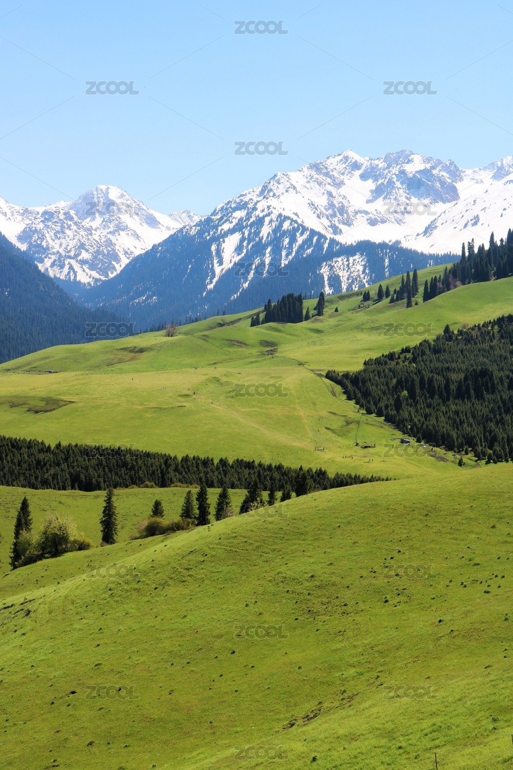 中国新疆夏季蓝天白云下G217独库公路沿途高山草原