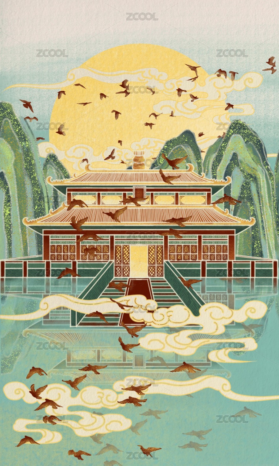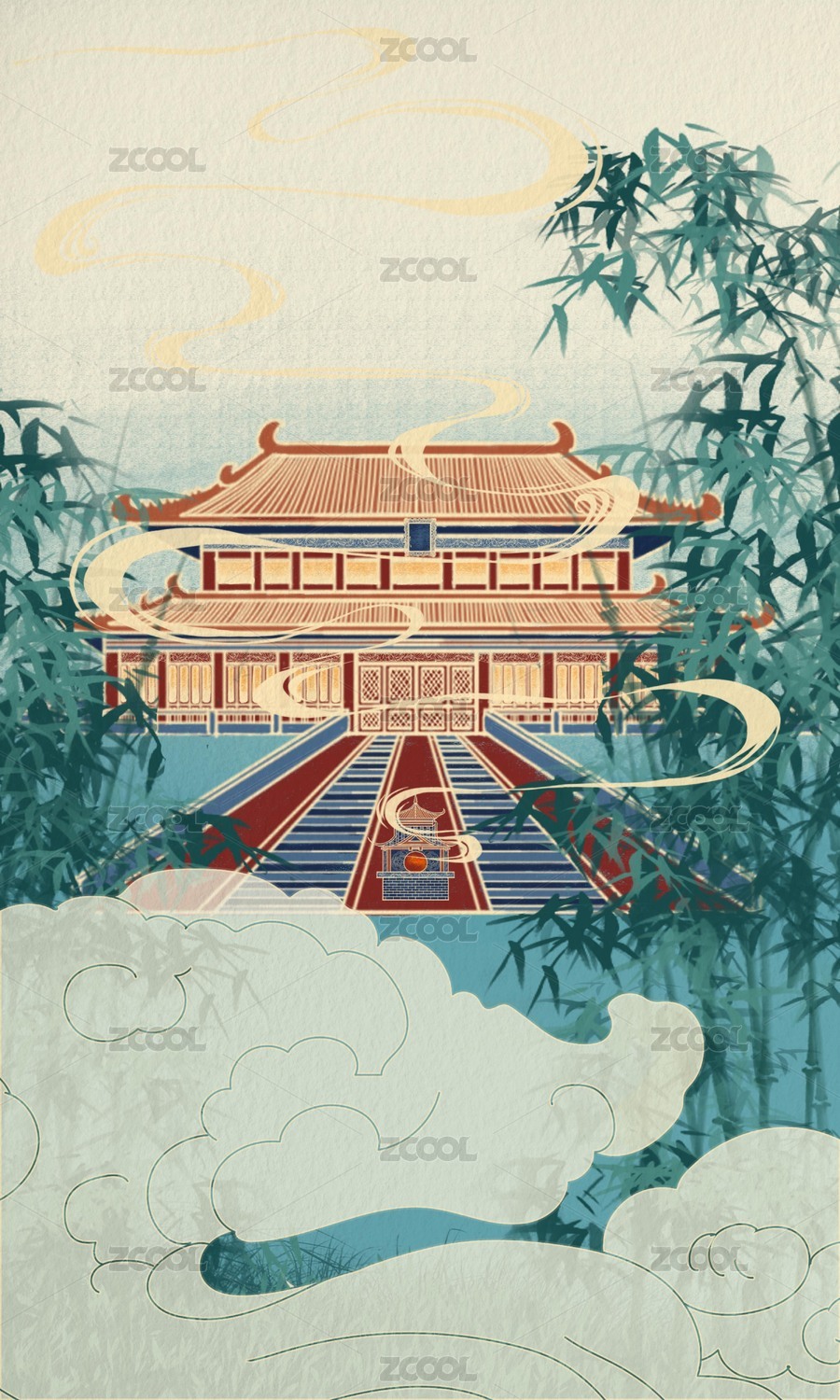 插画,国风,古建筑,故宫,紫禁城,北京,万寿宫