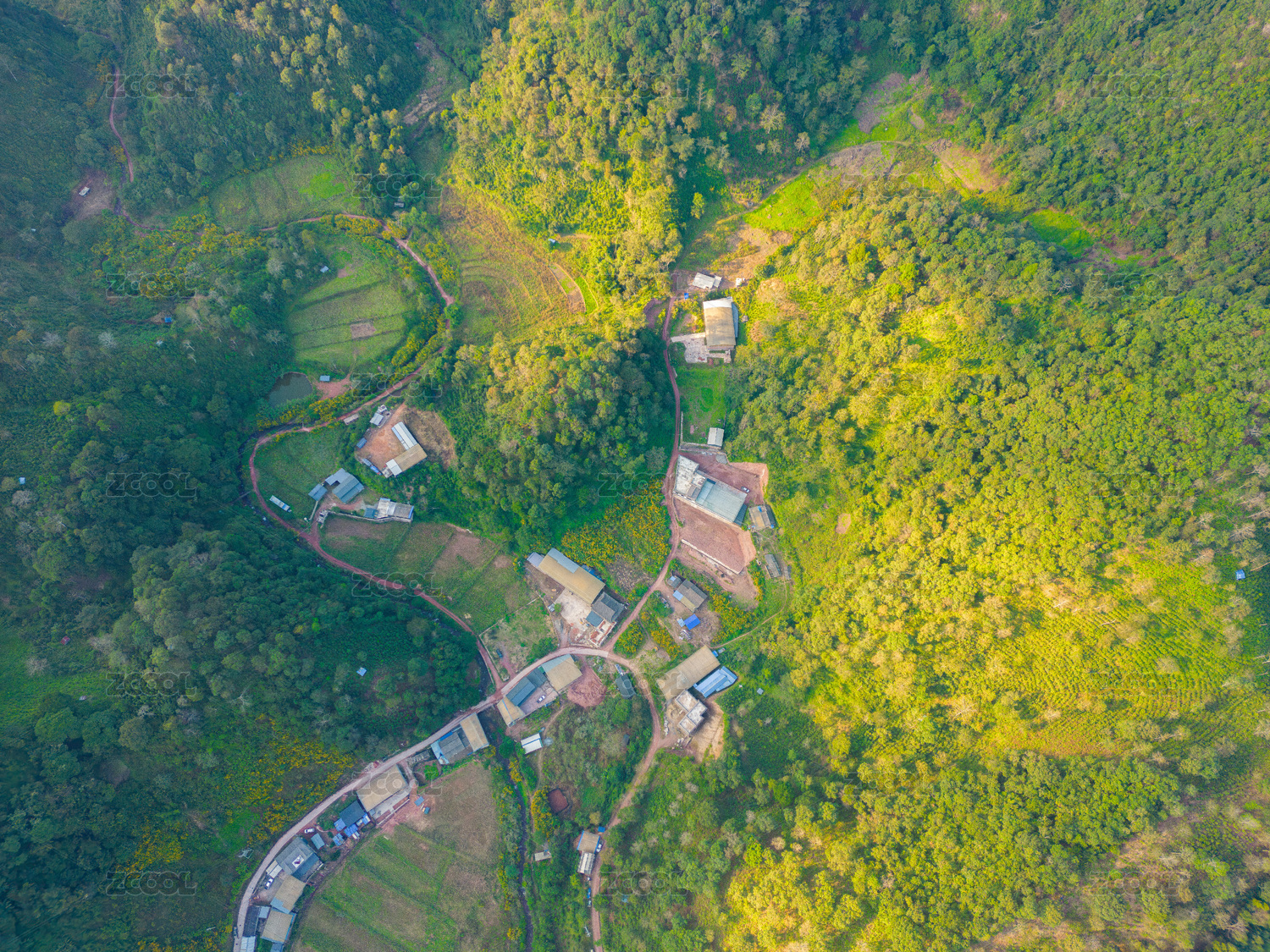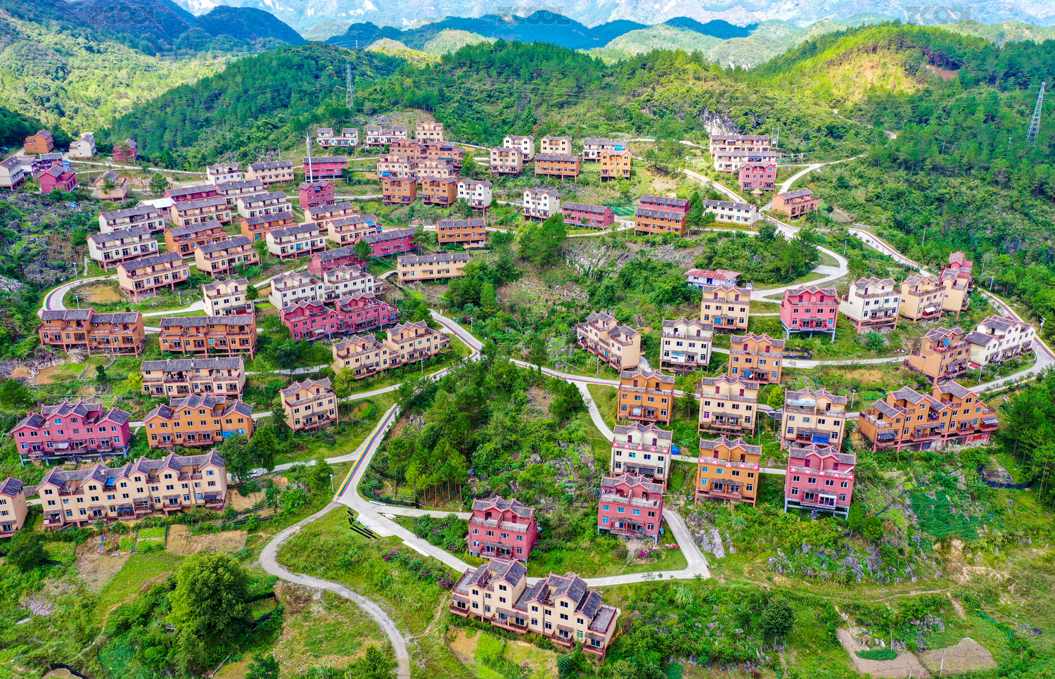 航拍中国云南德宏州梁河县丝光坪“地球村”