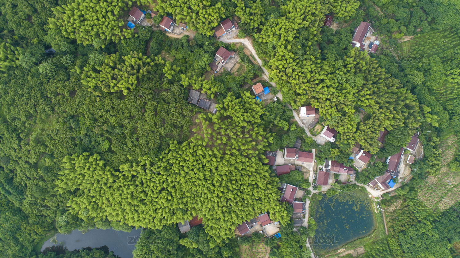 航拍中国江苏常州溧阳天目湖镇乡村风光