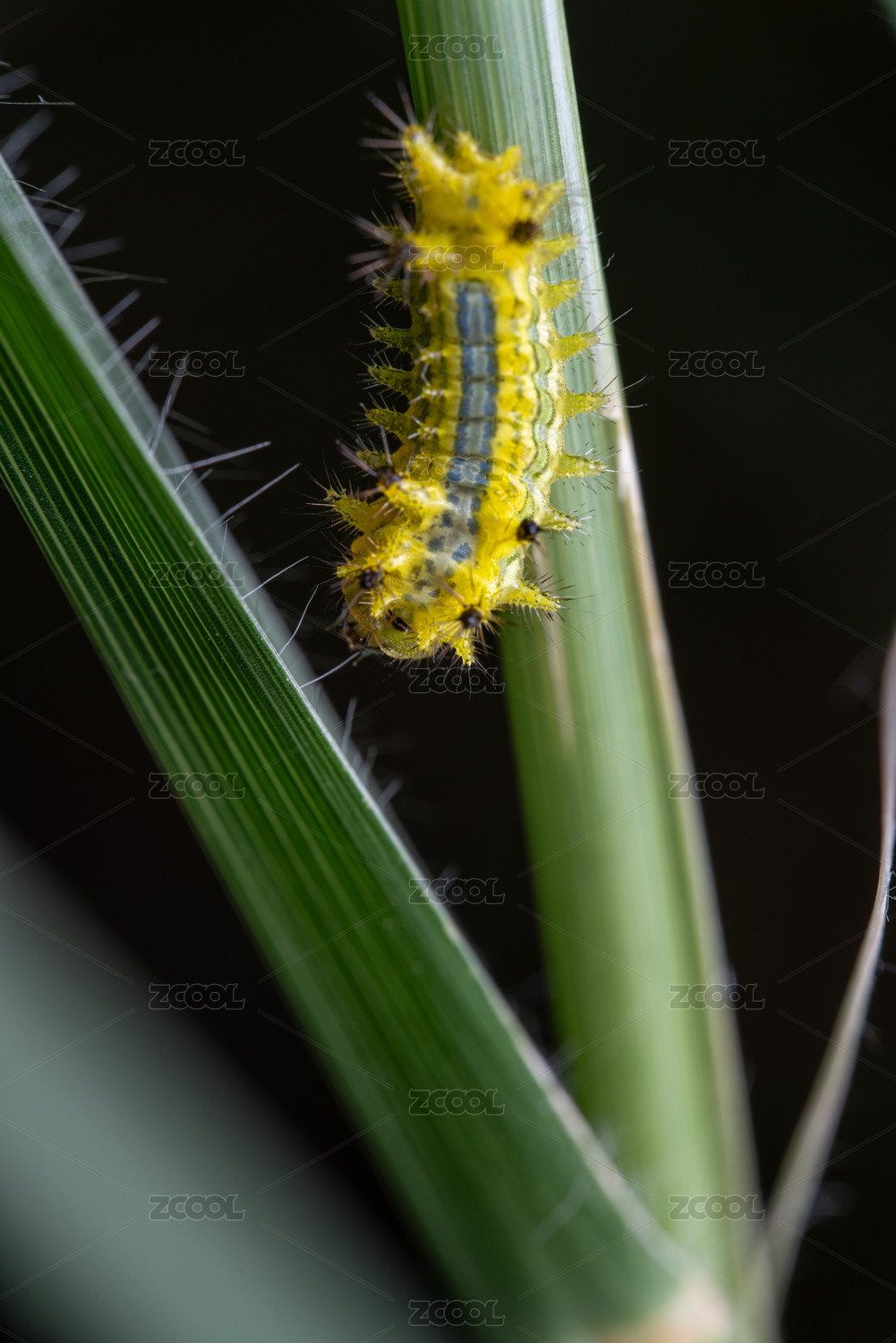 野外停息在植物枝叶上的肉虫子