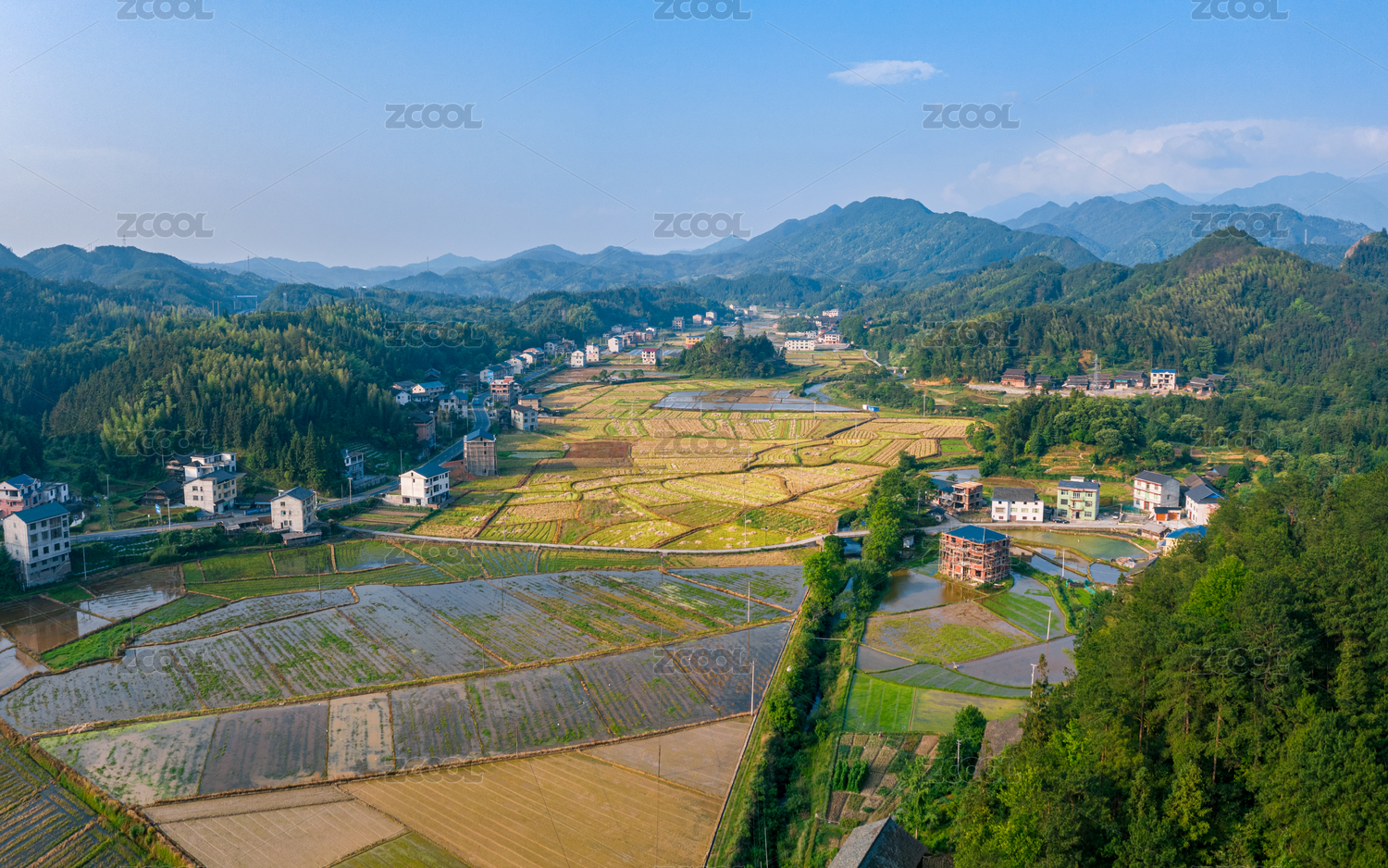 义乌大陈美丽乡村金色稻田绿水青山新农村