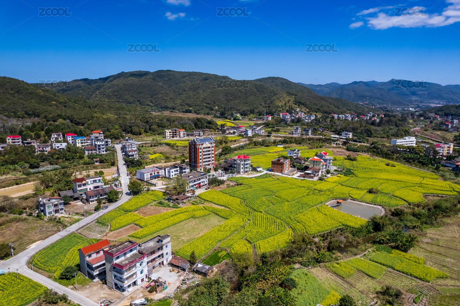 中国福建省闽侯县马墘村秋天稻田航拍风光