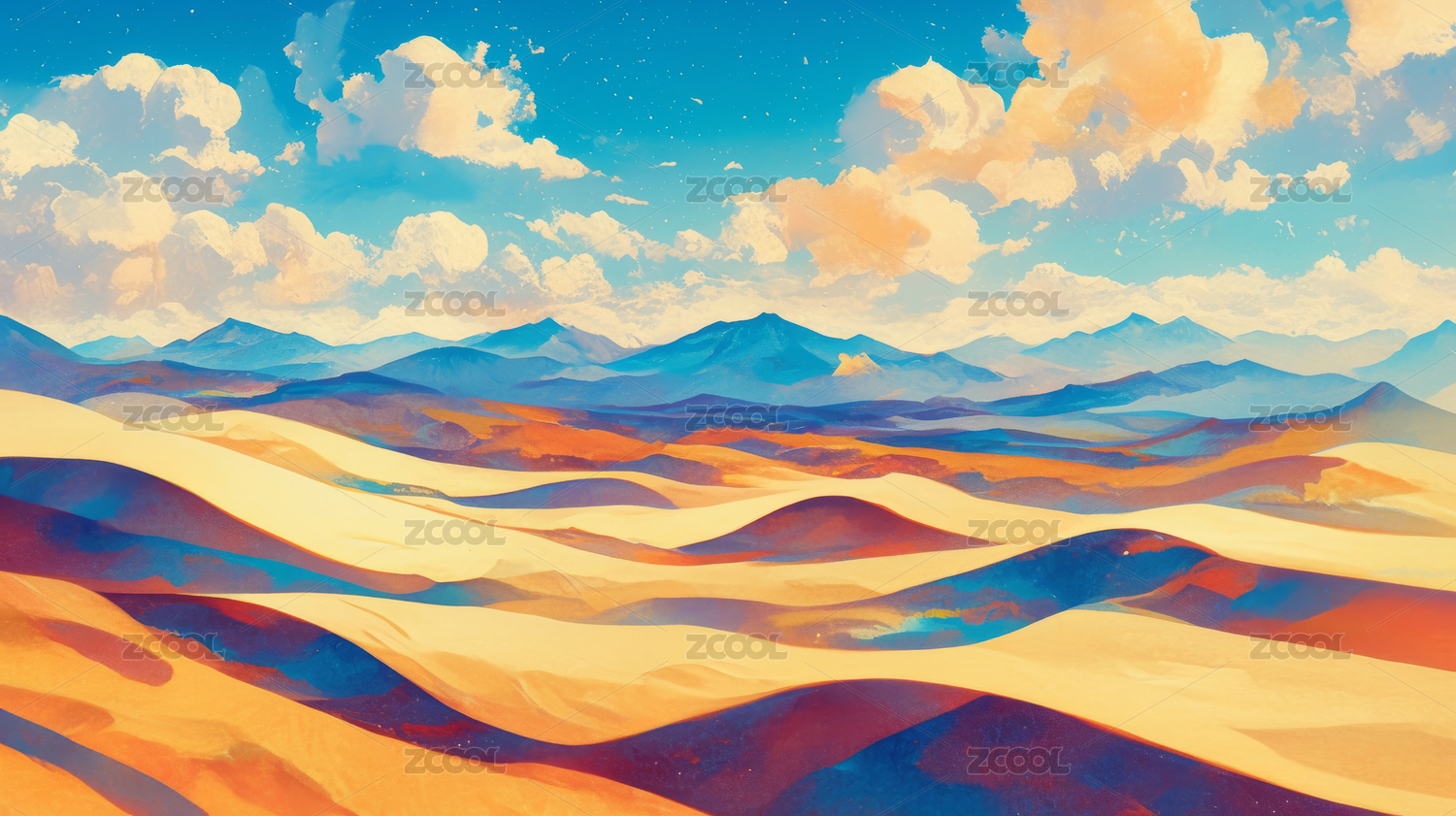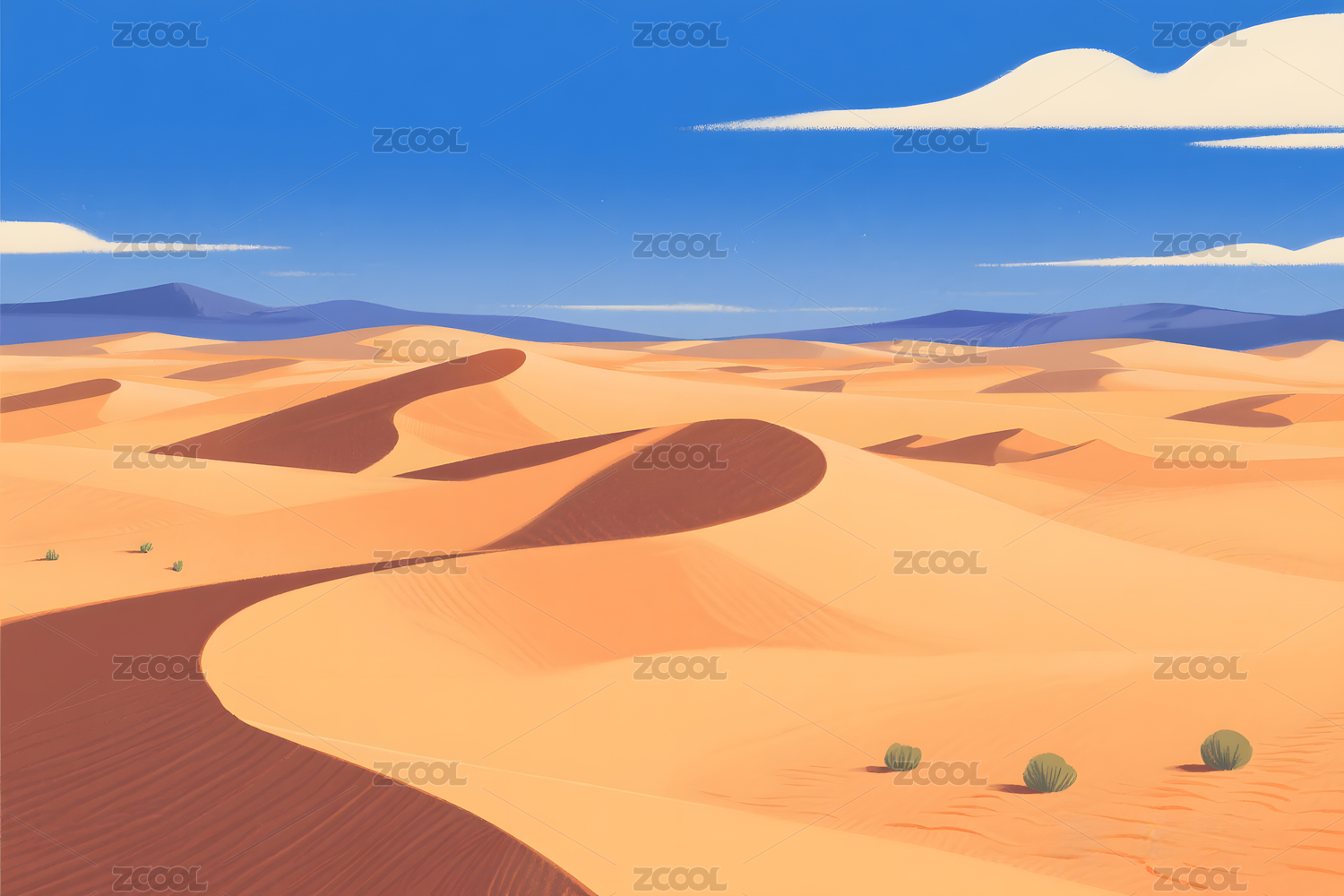 风景,户外,自然,风光,场景,大自然,壁纸,插画,卡通,黄沙