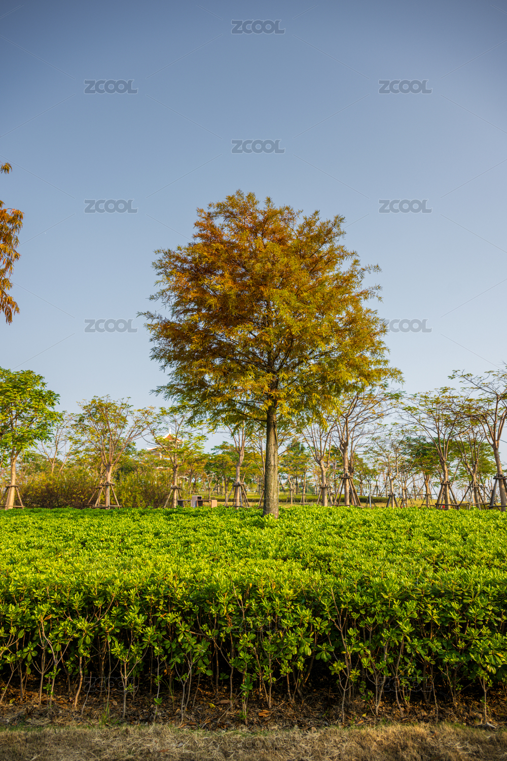 福建厦门马銮湾公园秋日公园中的金黄树木