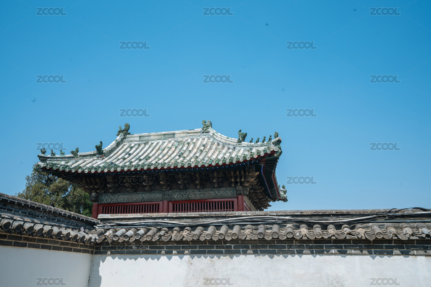 山西晋城府城关帝庙古建筑屋顶装饰雕塑
