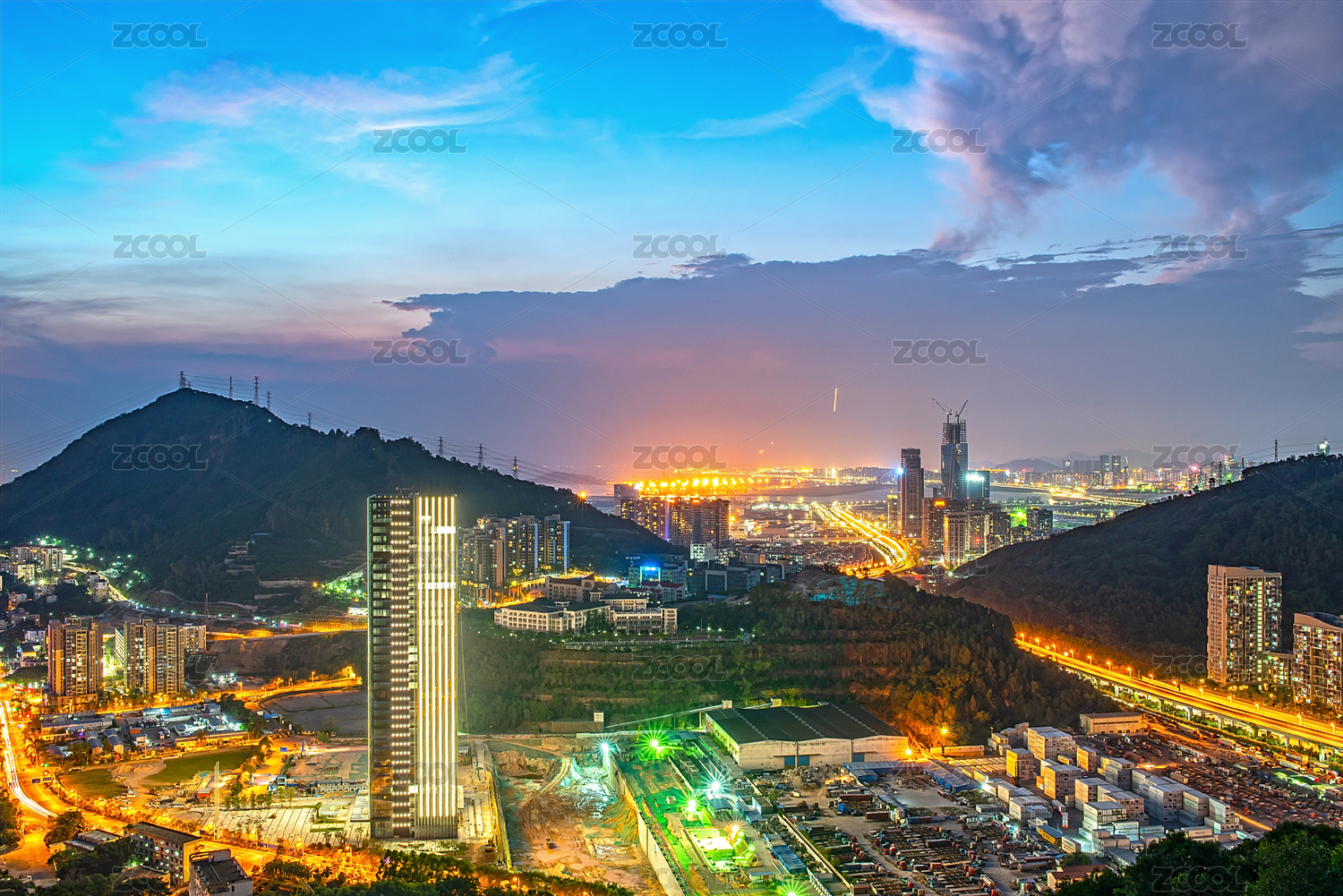 深圳小南山俯瞰前海湾保税港区城市夜景