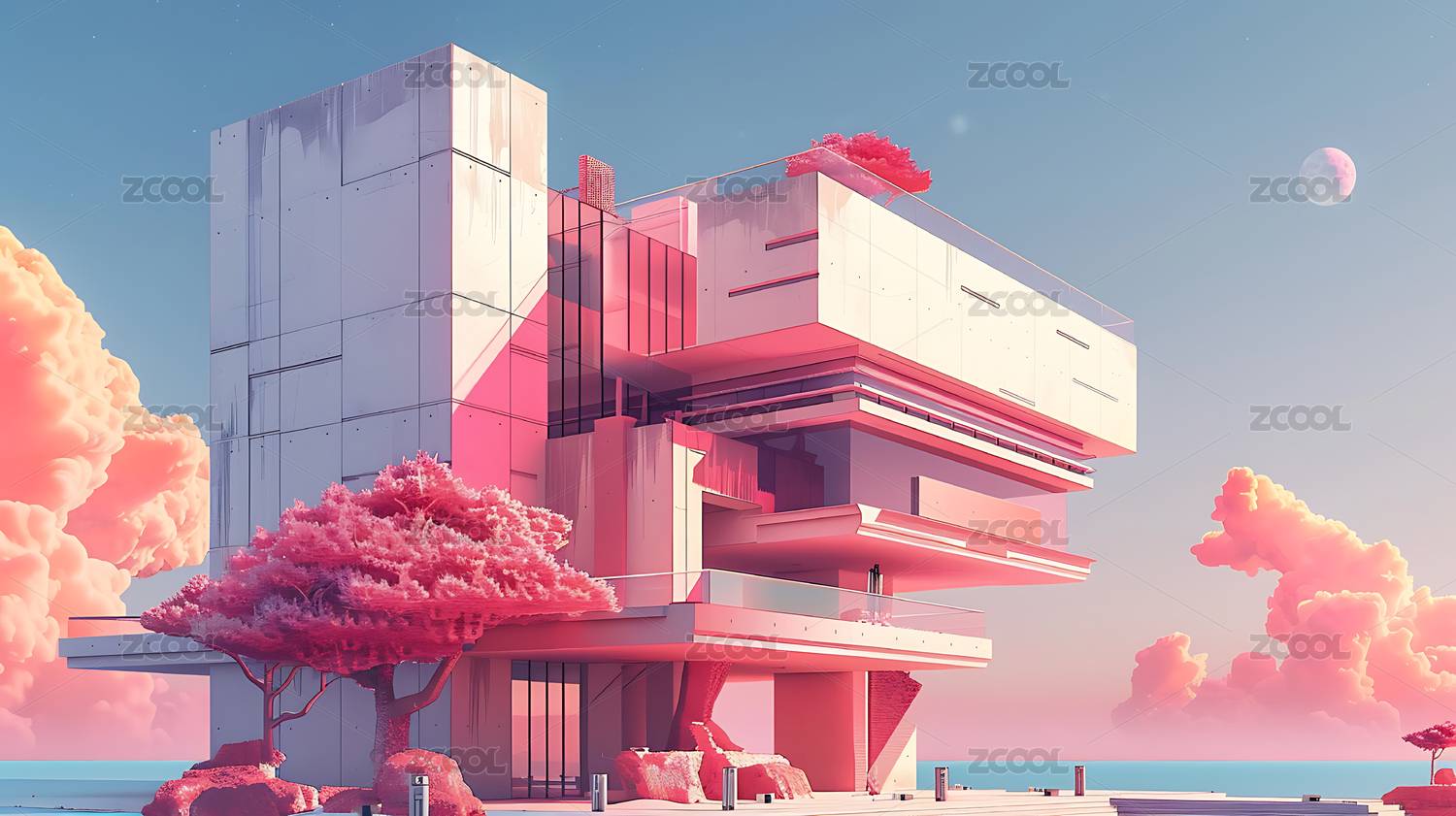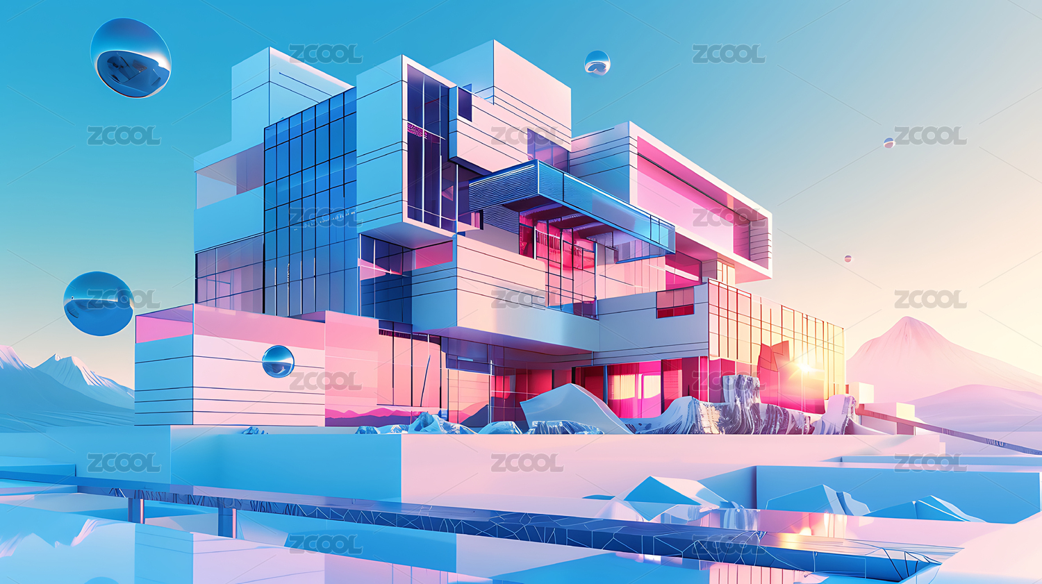 3d现代设计感建筑背景