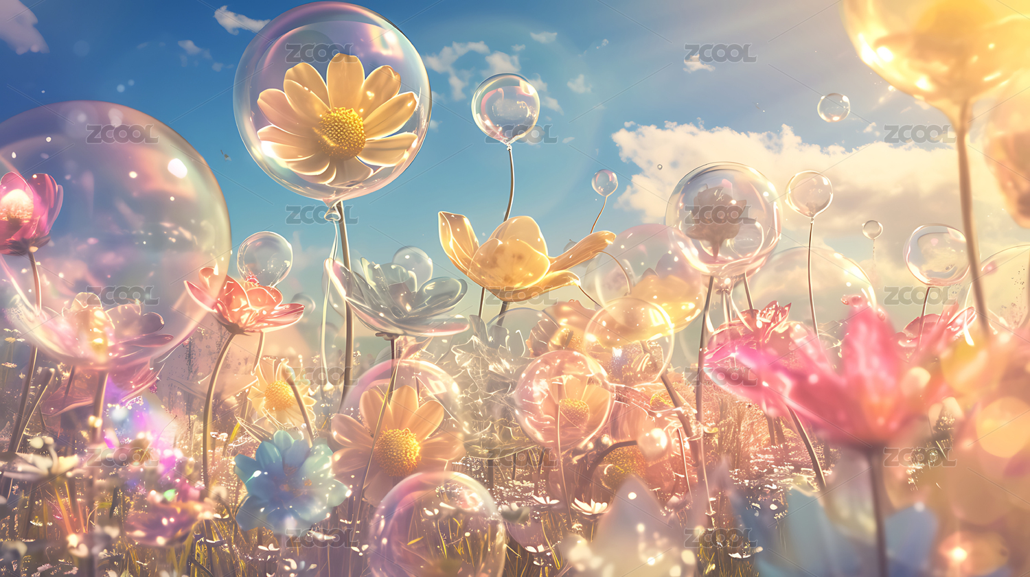 3d清新梦幻花朵背景