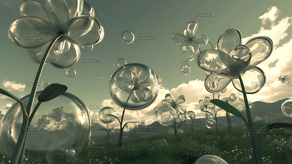 3d超现实抽象膨胀花草背景