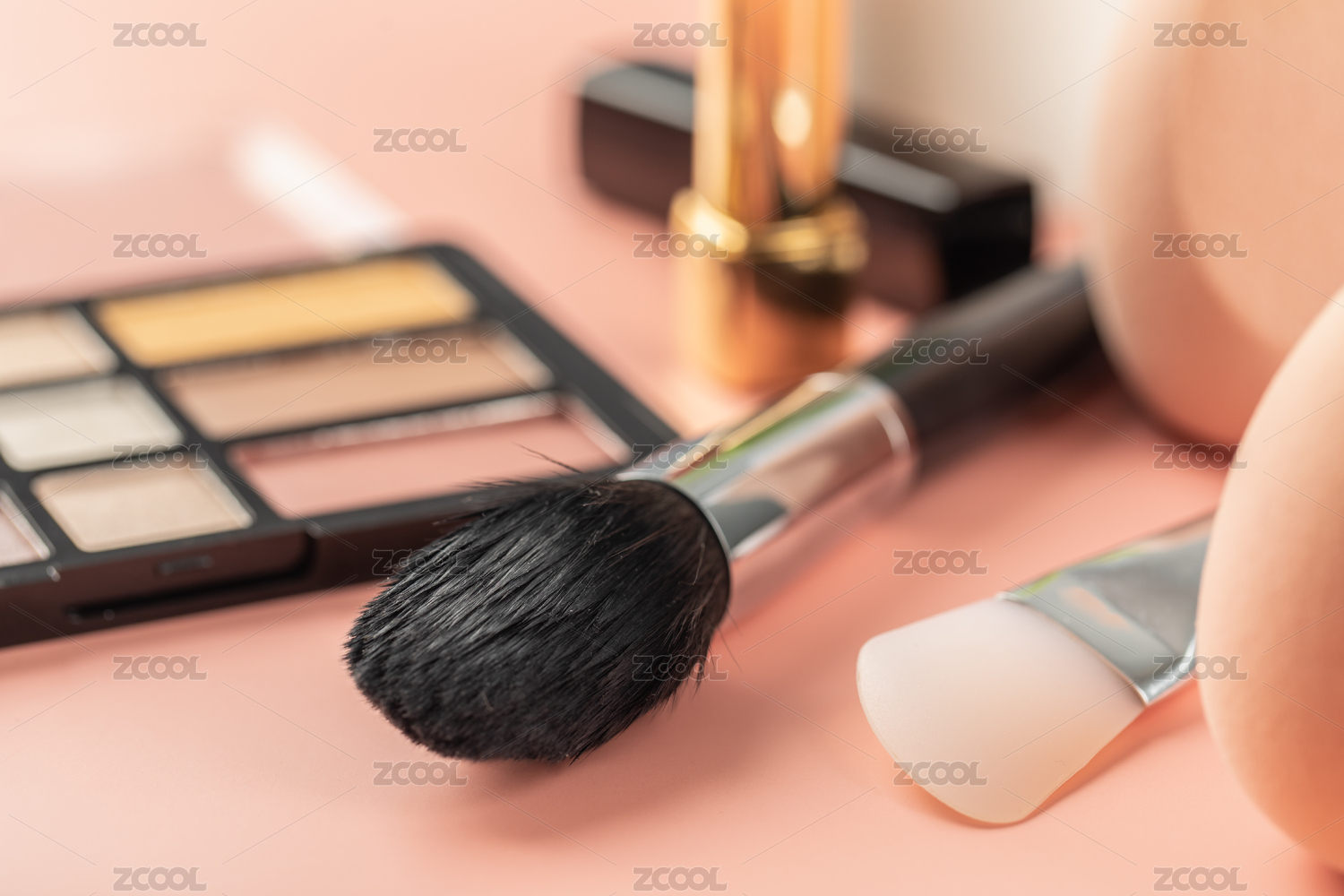 化妆工具和化妆品的整齐排列