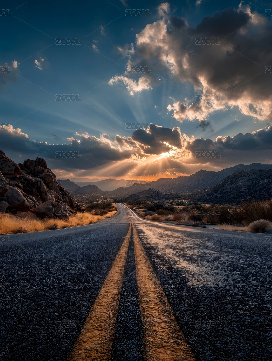 沙漠公路日落