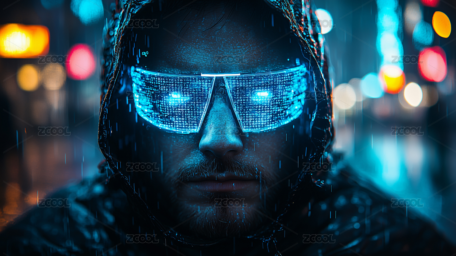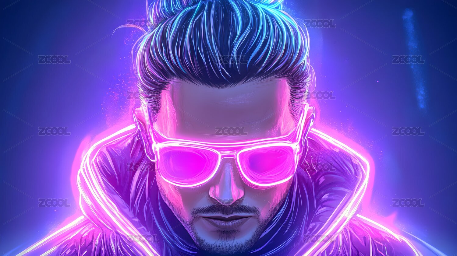 赛博朋克人物男人眼镜虚拟虚构未来科技发光