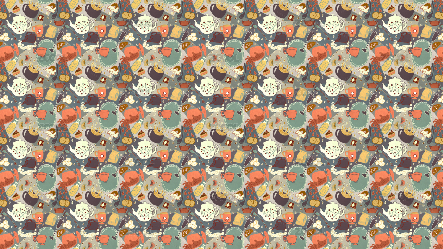 可爱温暖风格手绘碎花图案插画,无缝拼接插