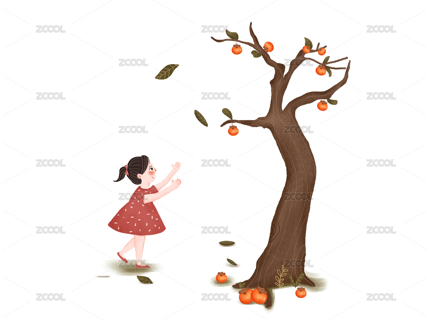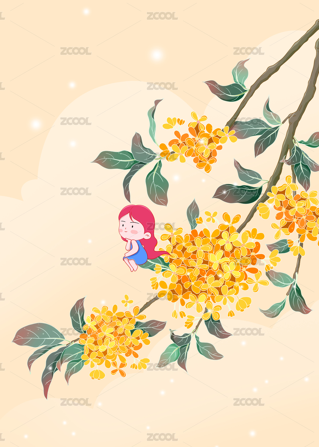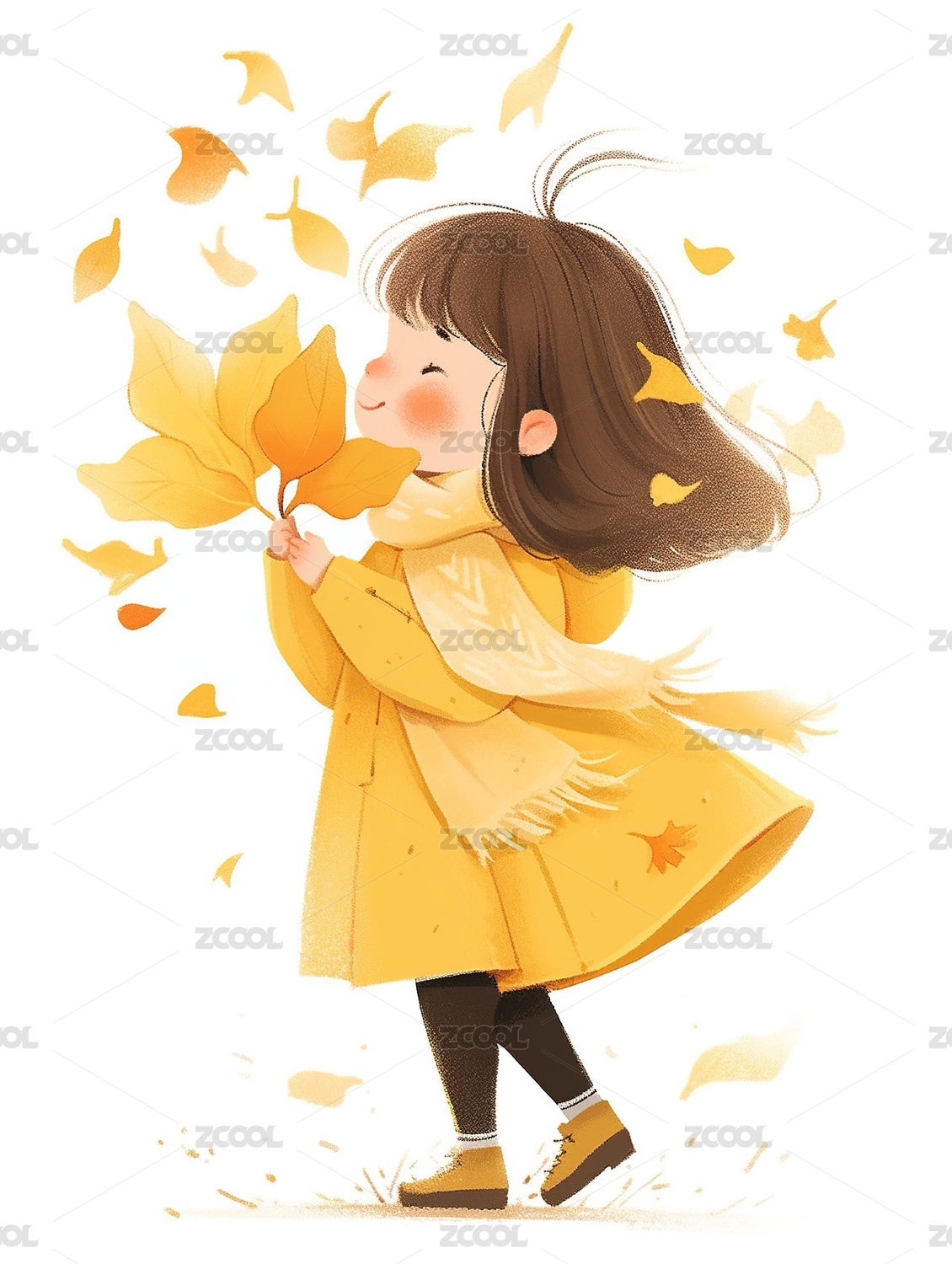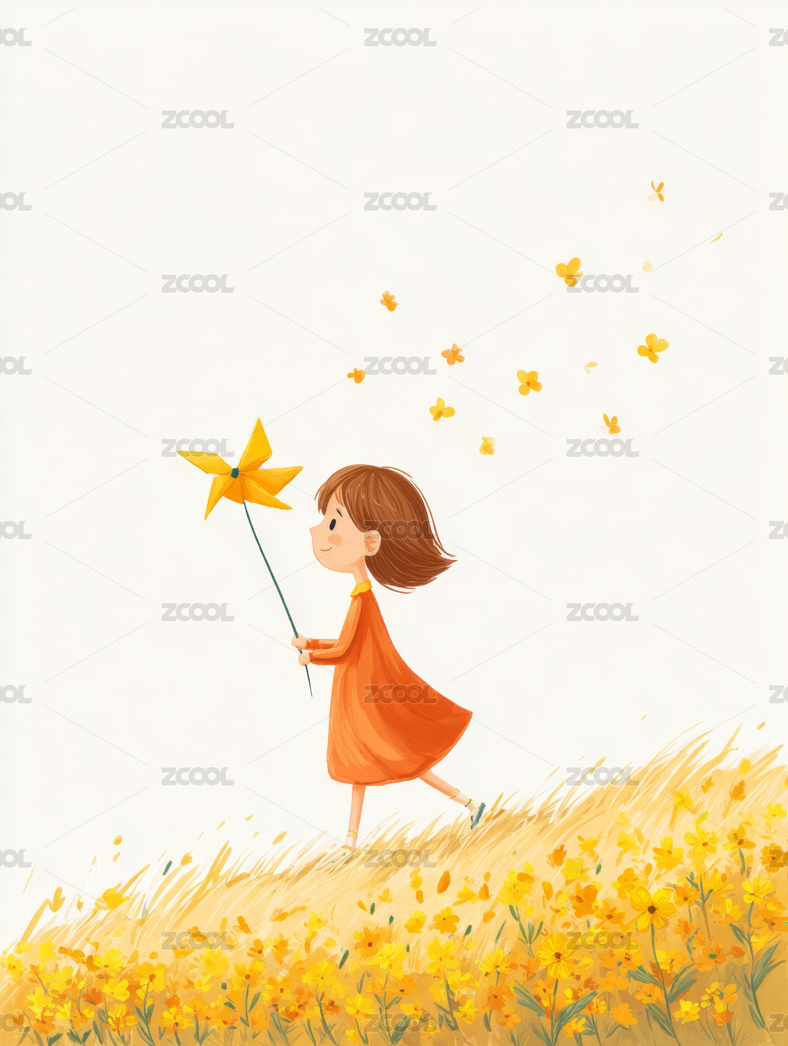 人物,女性,植物,花,长发,棕色,裙装,黄色,站姿,插图
