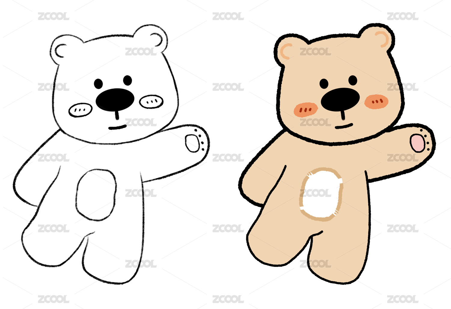 插画小熊三视图