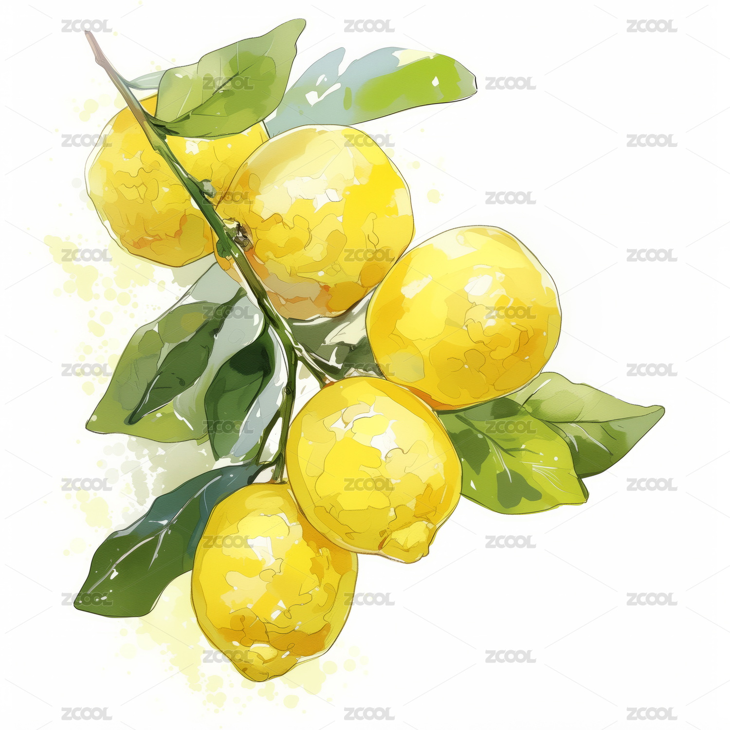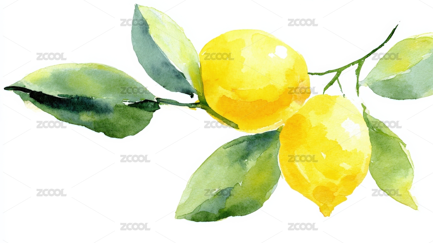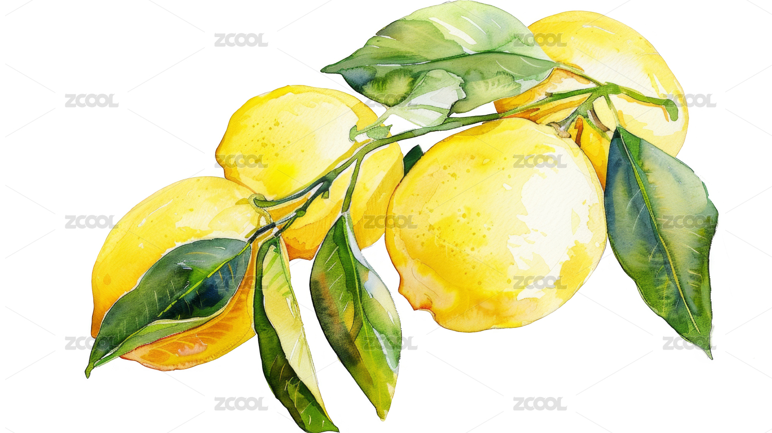 水彩柠檬枝头图