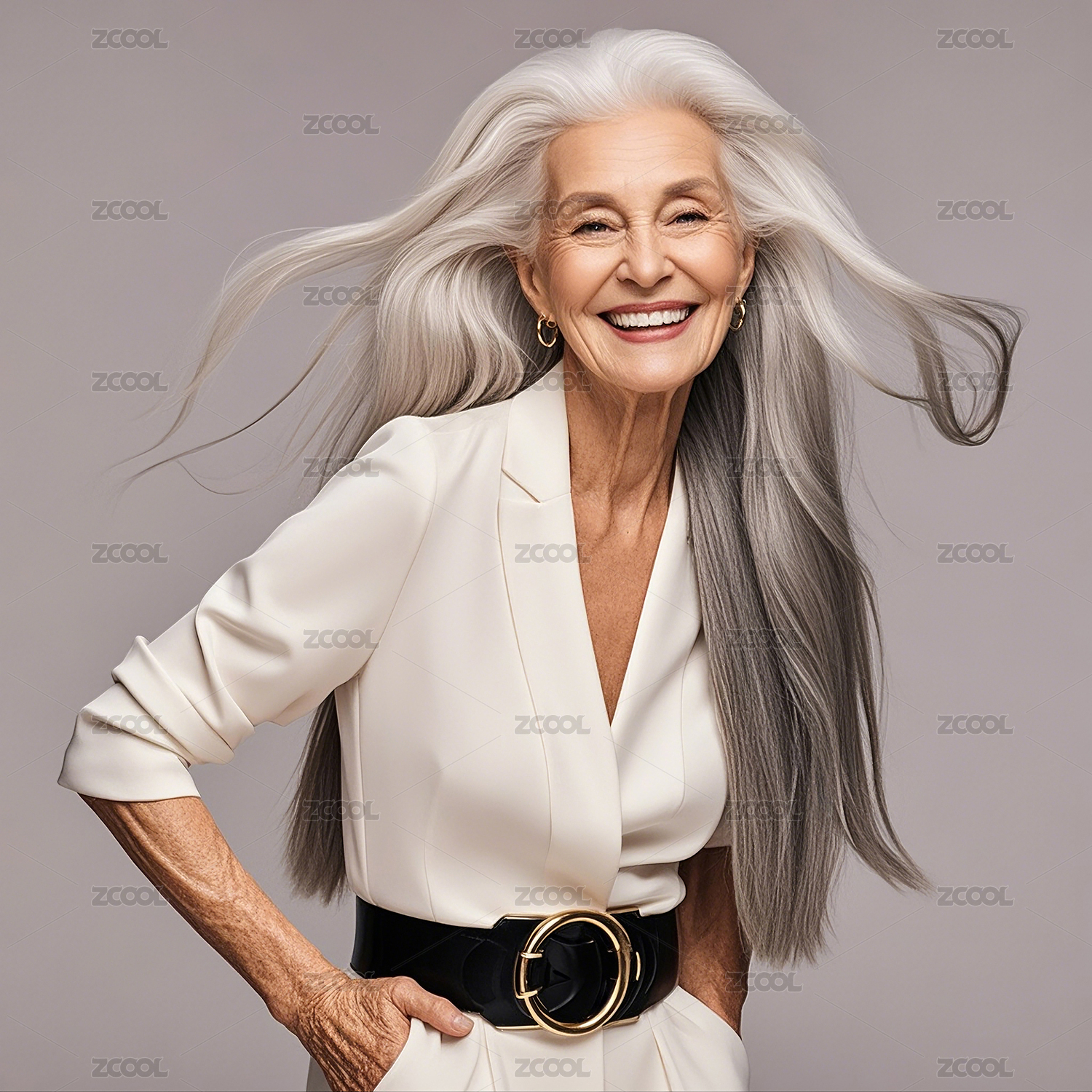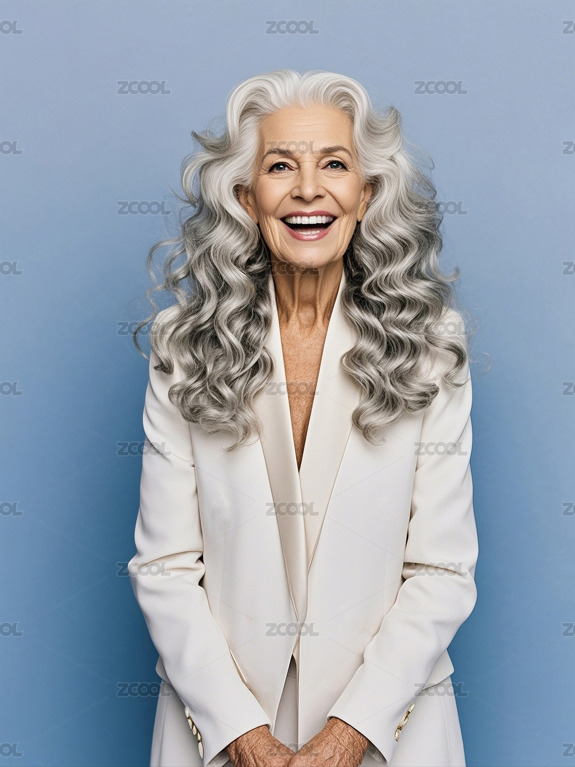 DXCZ202406,女性,女人,时尚,欧美,肖像,笑脸,银色头发,白色头发,银发