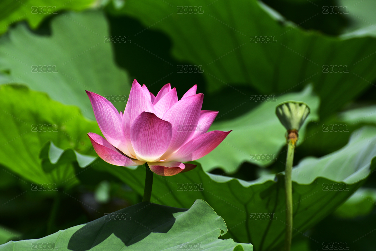 深圳洪湖公园夏天里绽放的粉红色荷花