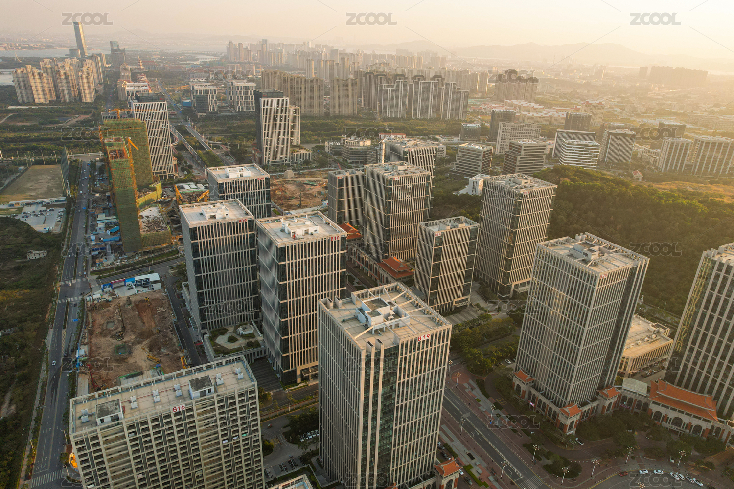 中国广东广州黄埔区萝岗香雪商业建筑群航拍