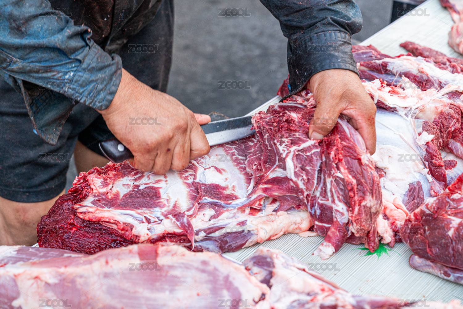 四川省宜宾地区叙州区观音镇农贸市场的猪肉摊位