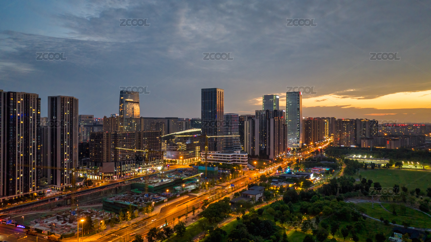 成都高新区夏季傍晚的城市风光