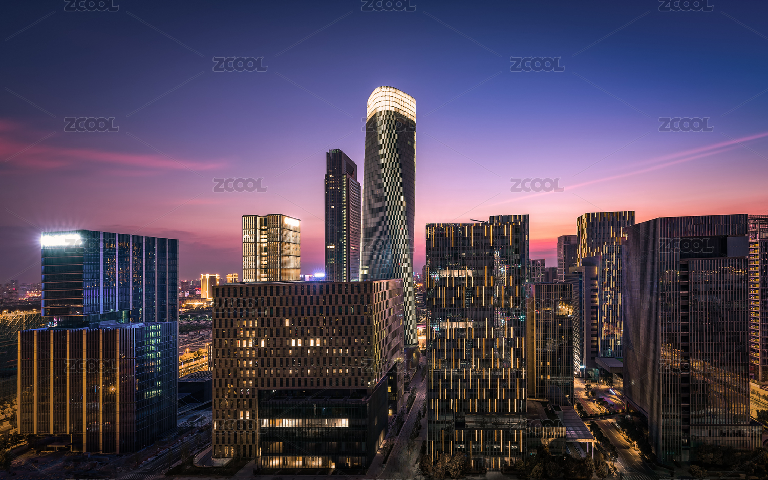 武汉泛海商务区傍晚城市风光
