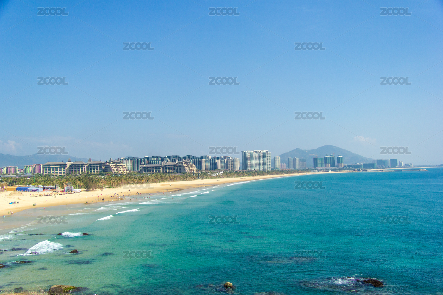 海南三亚蓝天白云下的蔚蓝色海洋海岸线延时