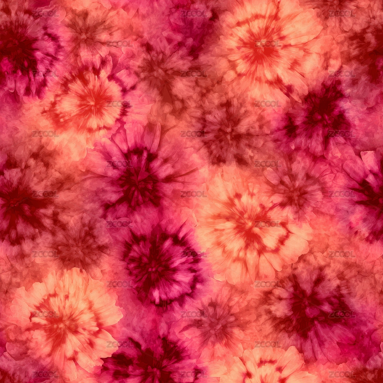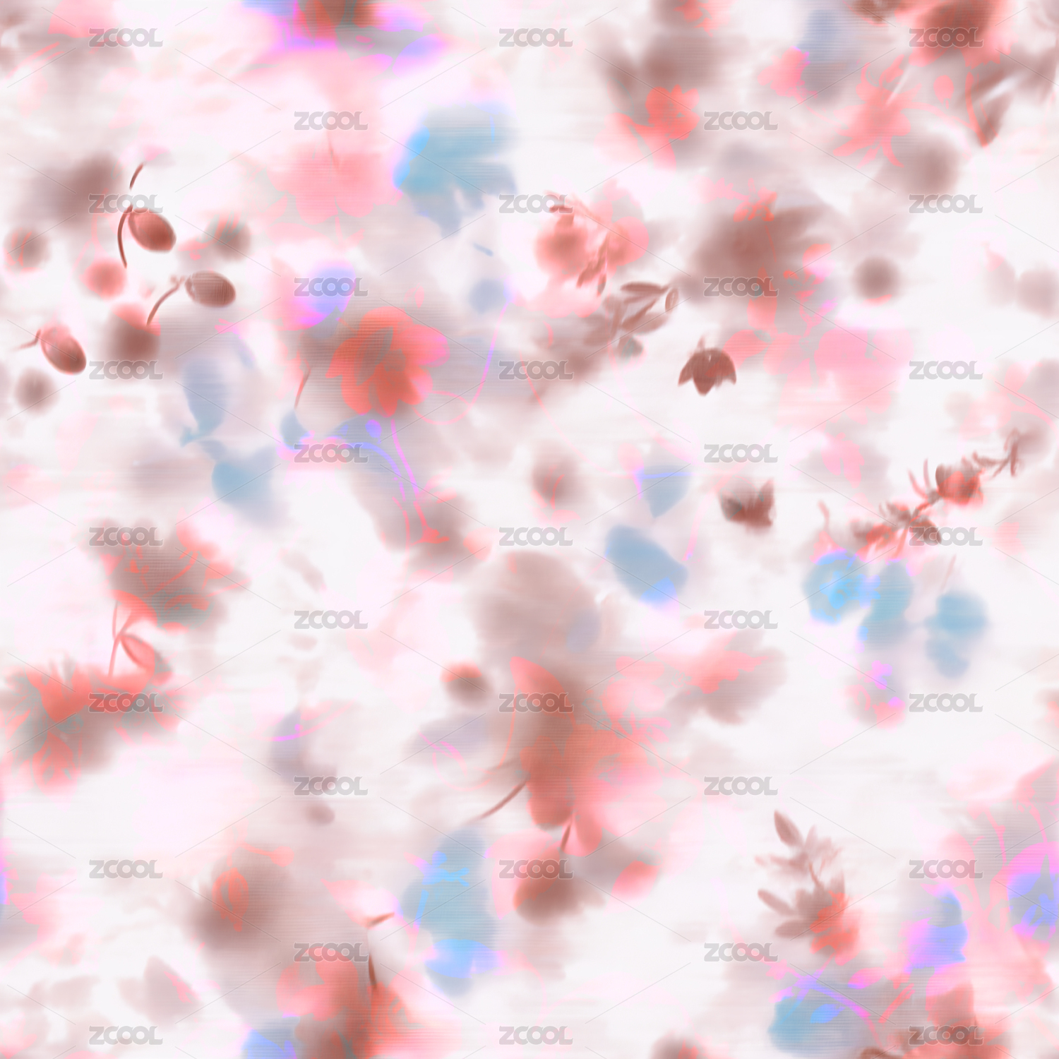 晕染风格红色花朵图案