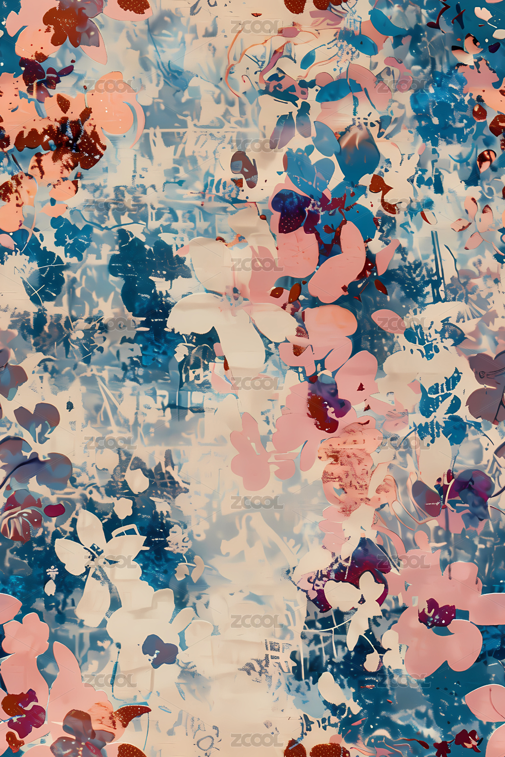 粉绿灰交融的水彩纹理图案