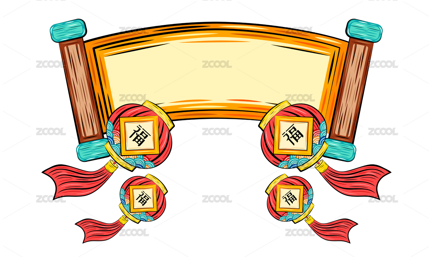 国潮卷轴灯笼吉祥送福矢量插画素材