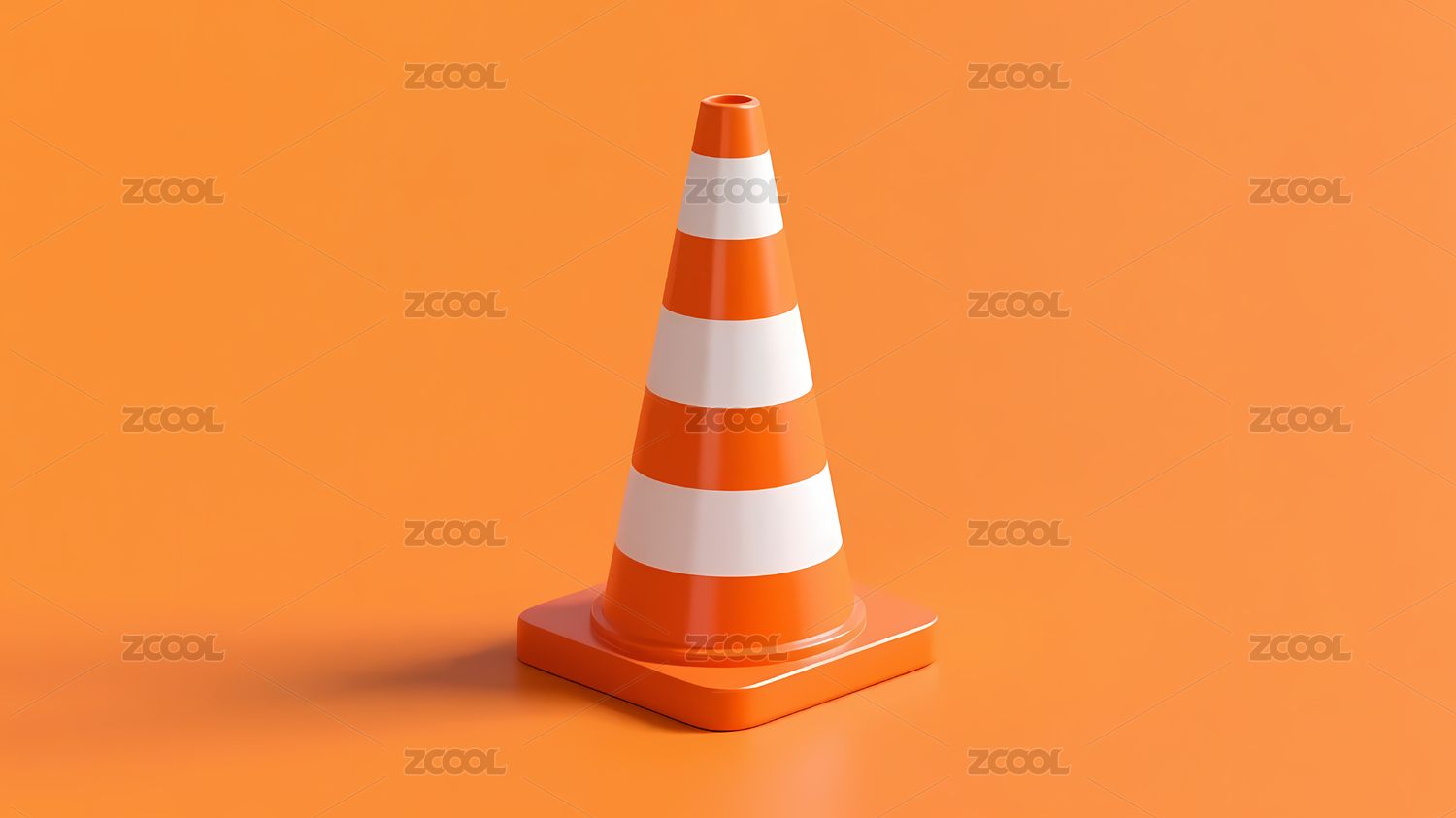橙色交通锥与粉色背景的卡通风格
