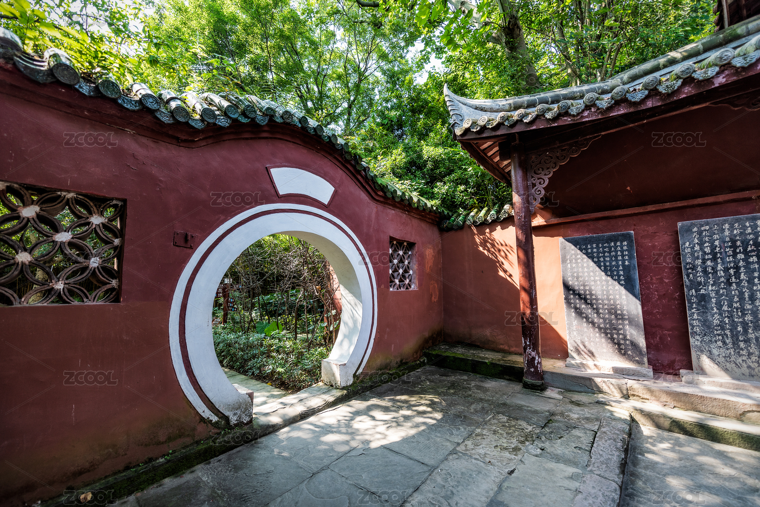 中国山东省淄博市临淄区姜太公祠内的中式园林墙园林门