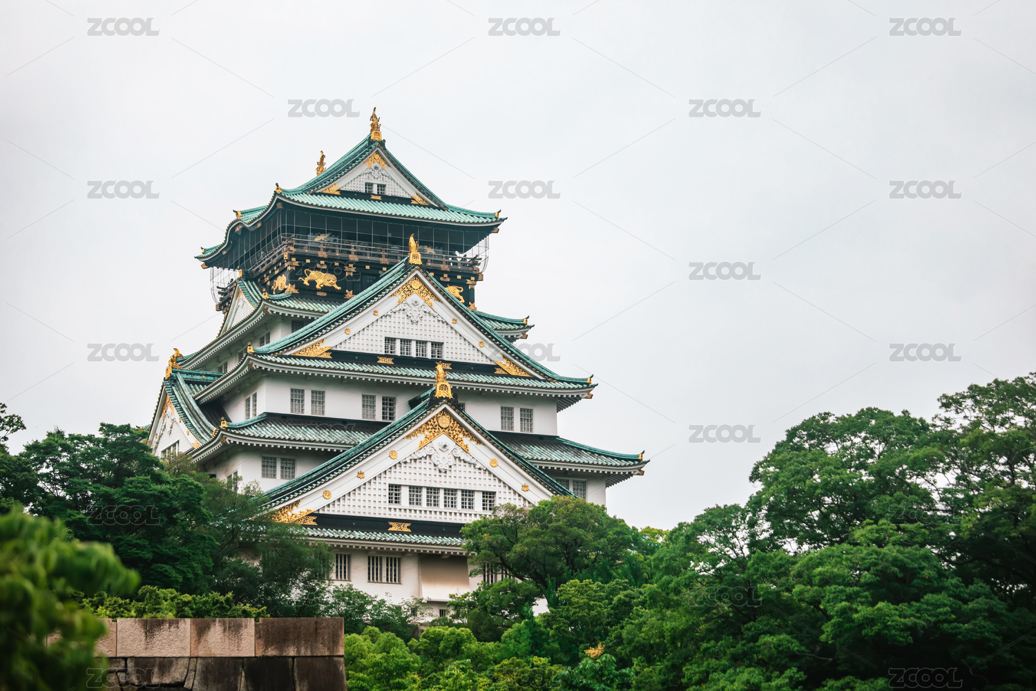 位于日本大阪的古建筑大阪城的景色