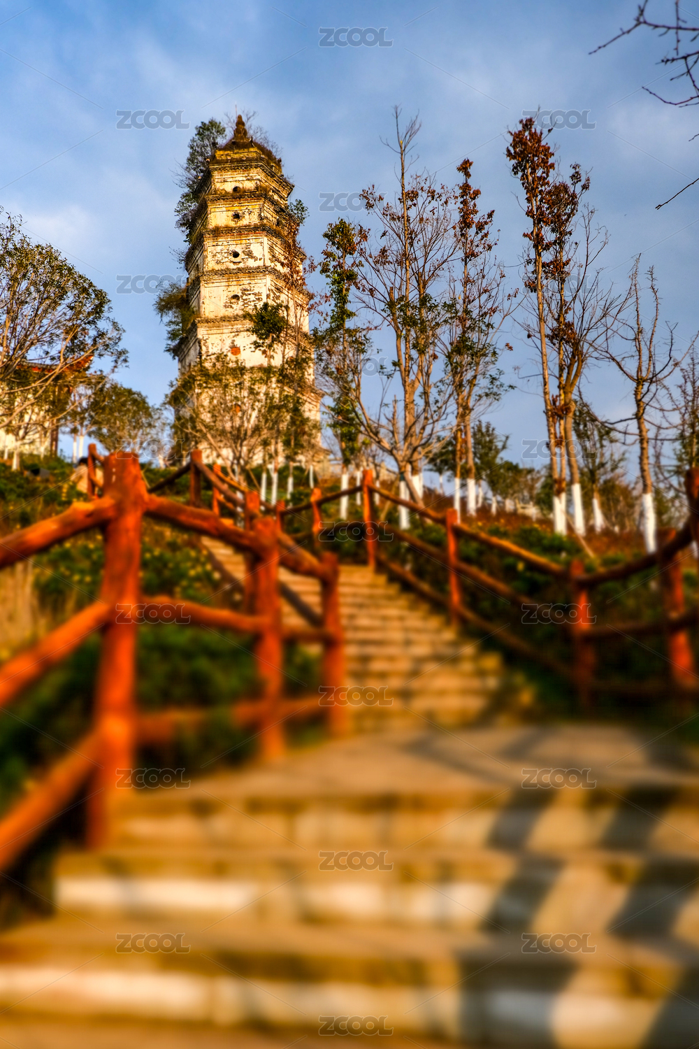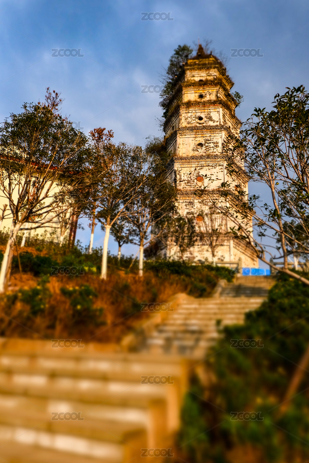 浙江,温州,江心寺,蓝天,白云,古塔,古桥,寺庙,宗教,树木