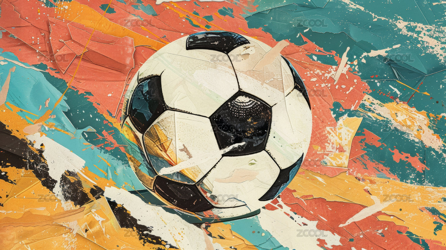 复古拼贴画上的足球,复古海报,世界杯插画
