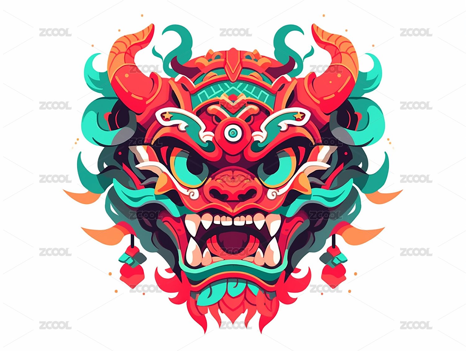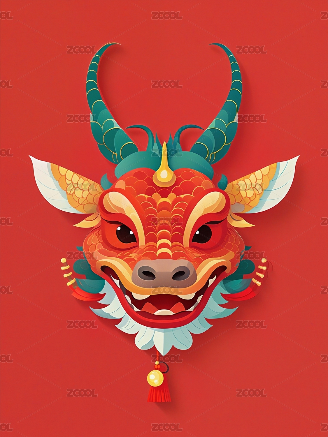 国潮,新年,剪纸风,年画,特写,头像,HEZODIAC2021,红色,插画,中国风