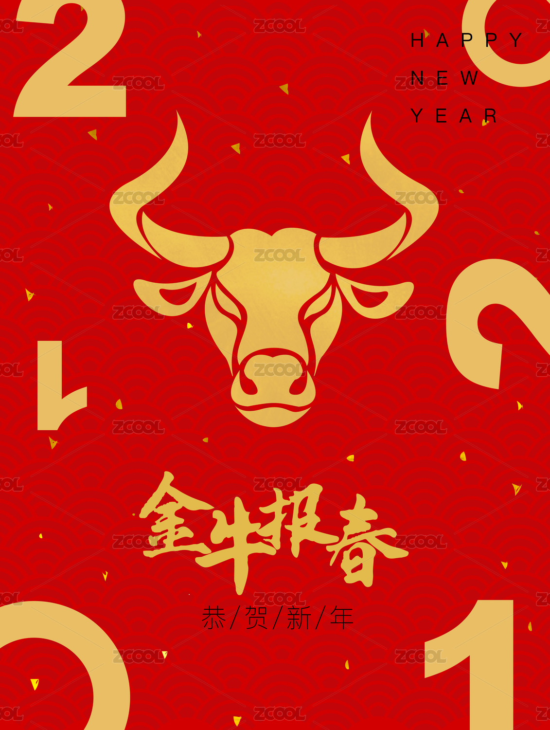 金牛聚财锦鲤牡丹赐福开运春节矢量插画海报