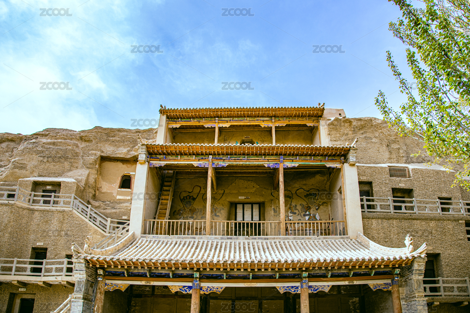 世界遗产著名历史古迹莫高窟古建筑三层楼