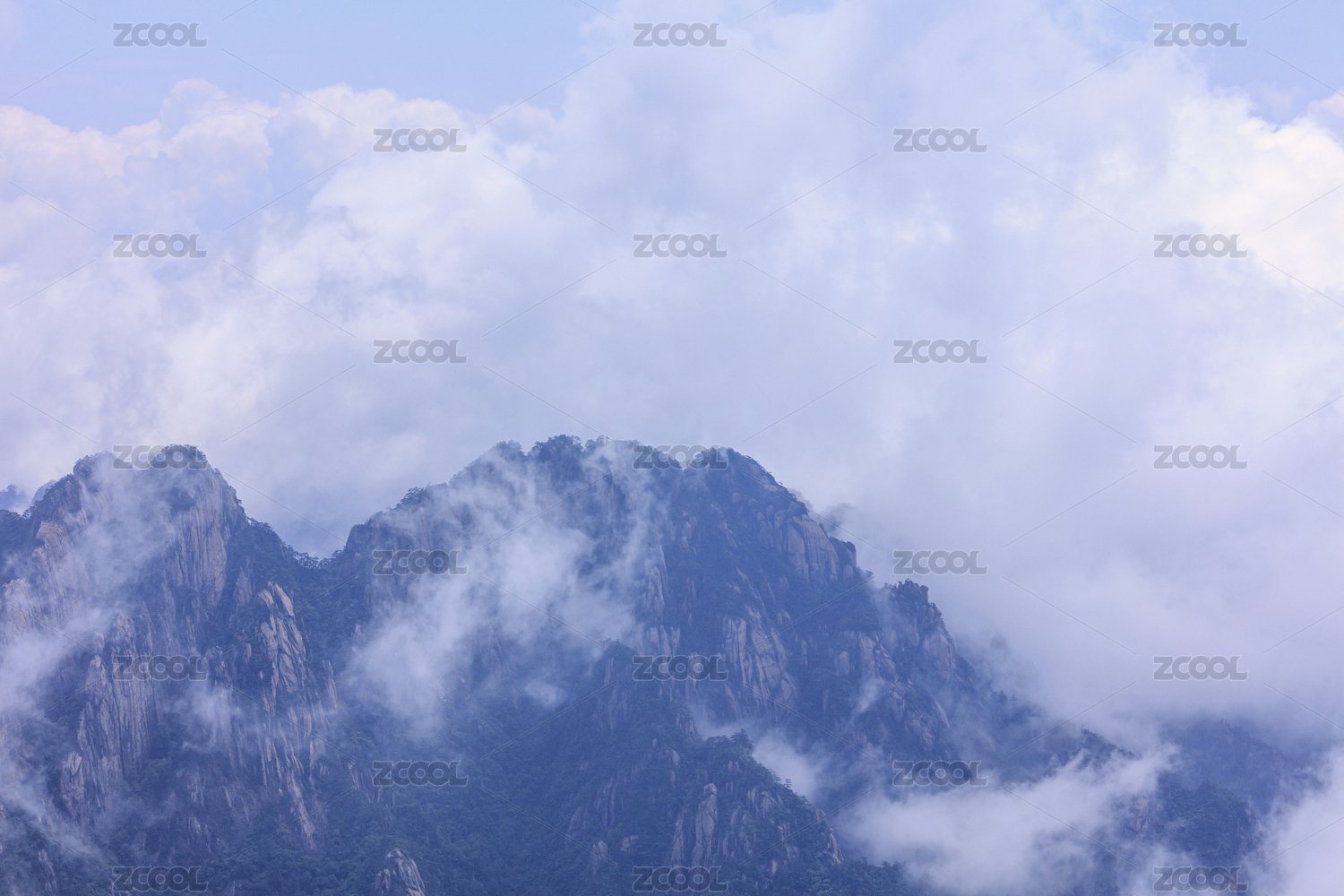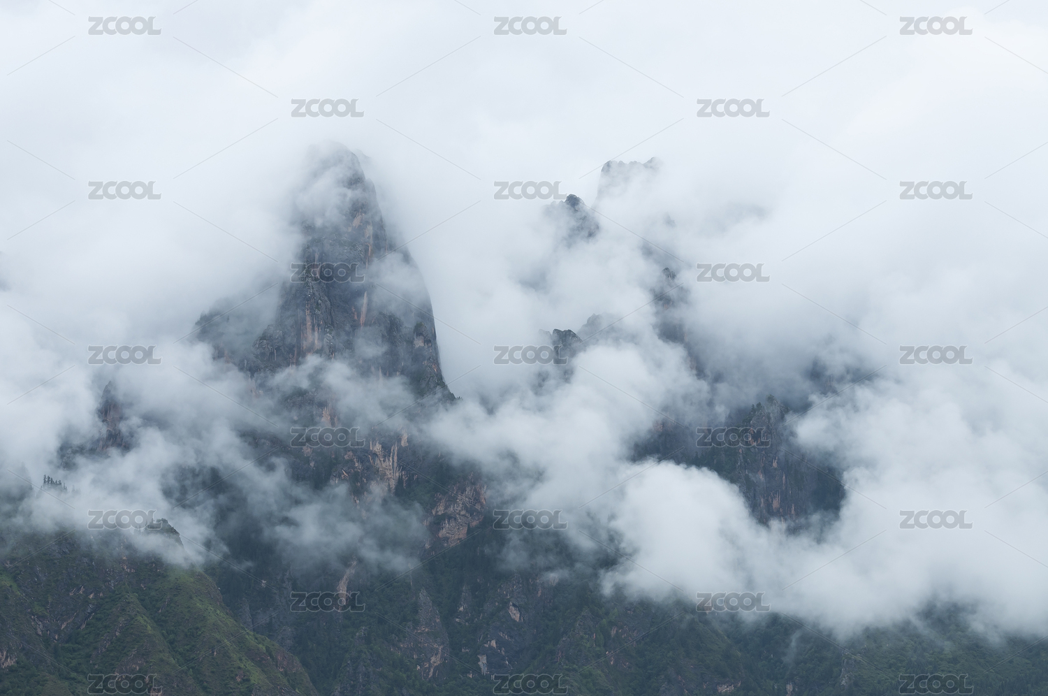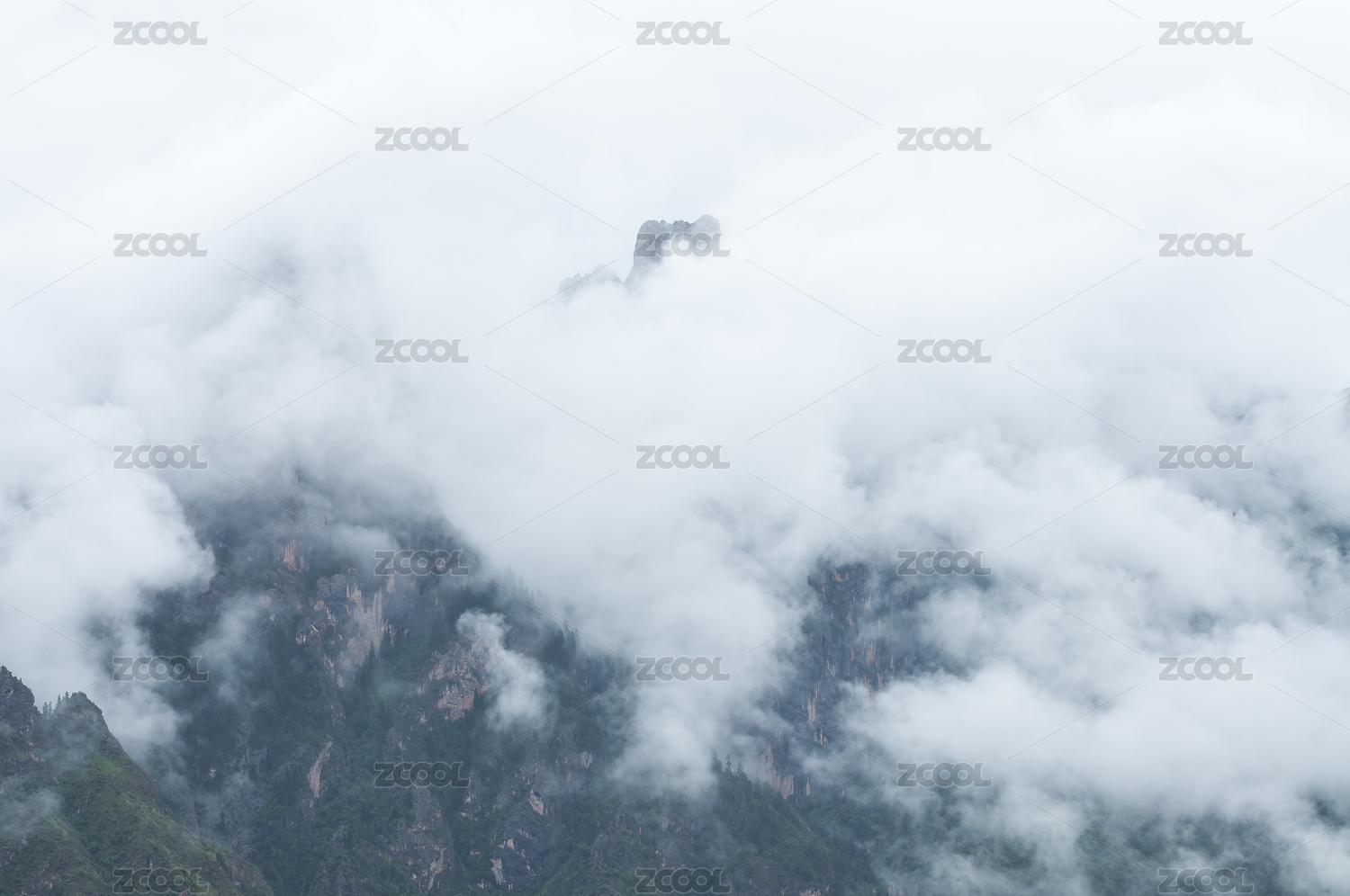 云山雾绕云里雾里的山峰山顶水墨画感风景